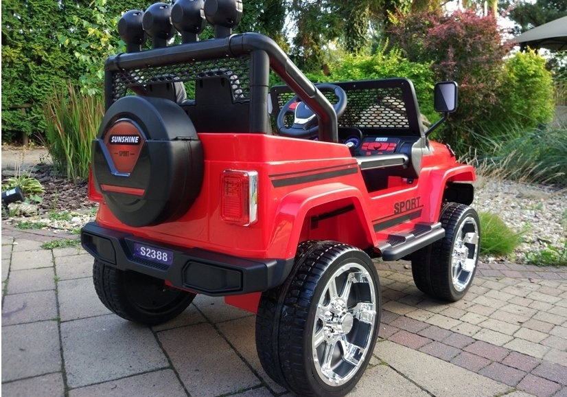 Terenowe Auto S2388 osadzone jest na dużych, wykonanych z miękkiego materiału kołach. Dzięki temu autem możemy poruszać się nie tylko po twardej powierzchni, ale też po delikatnych nierównościach. Duży prześwit pozwoli pokonać nam napotkane podczas wycieczek przeszkody.