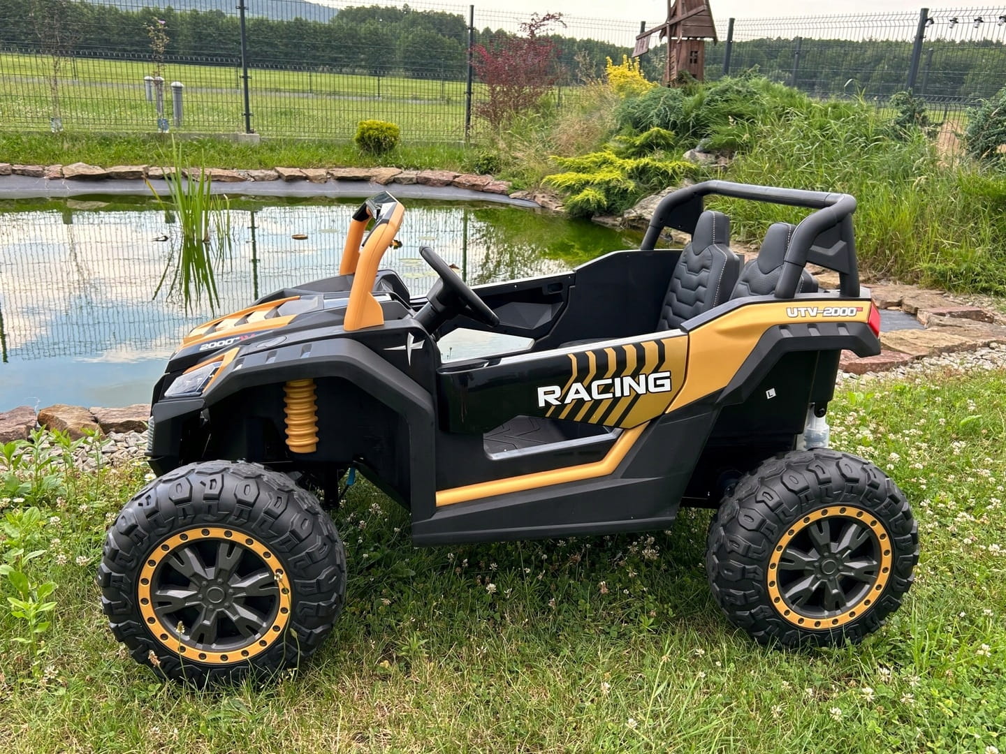 Pojazd posiada dwa oddzielne regulowane miękkie fotel z dwoma pasami bezpieczeństwa. Łączna szerokość obydwu foteli to aż 61cm.