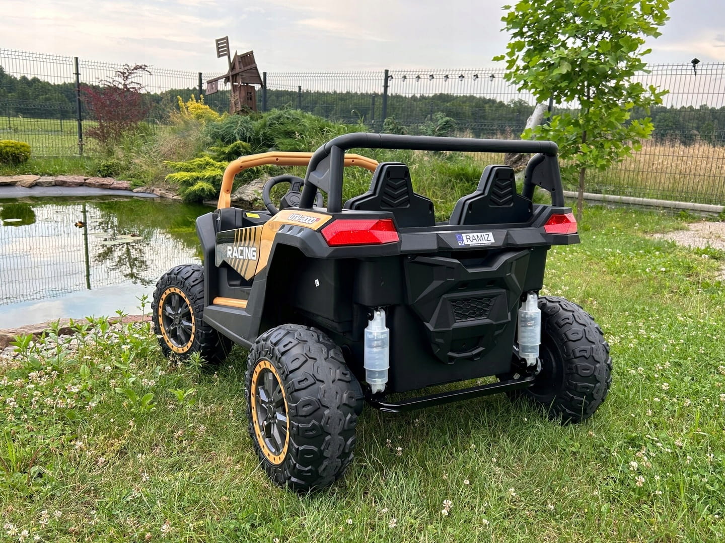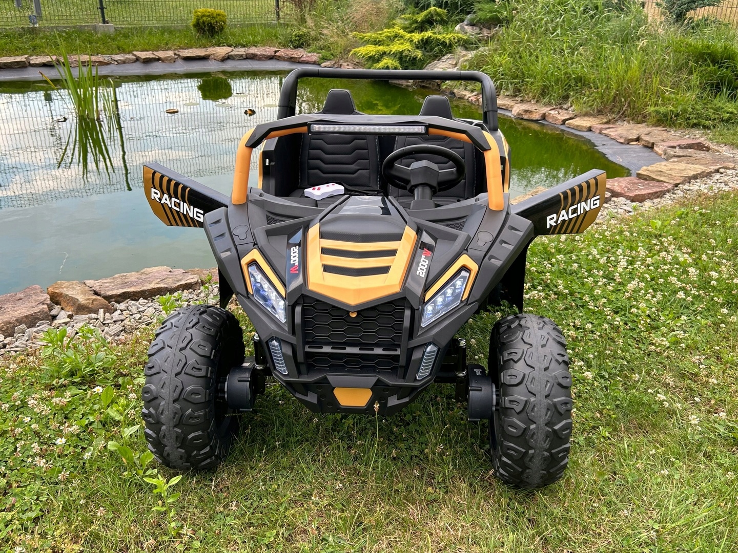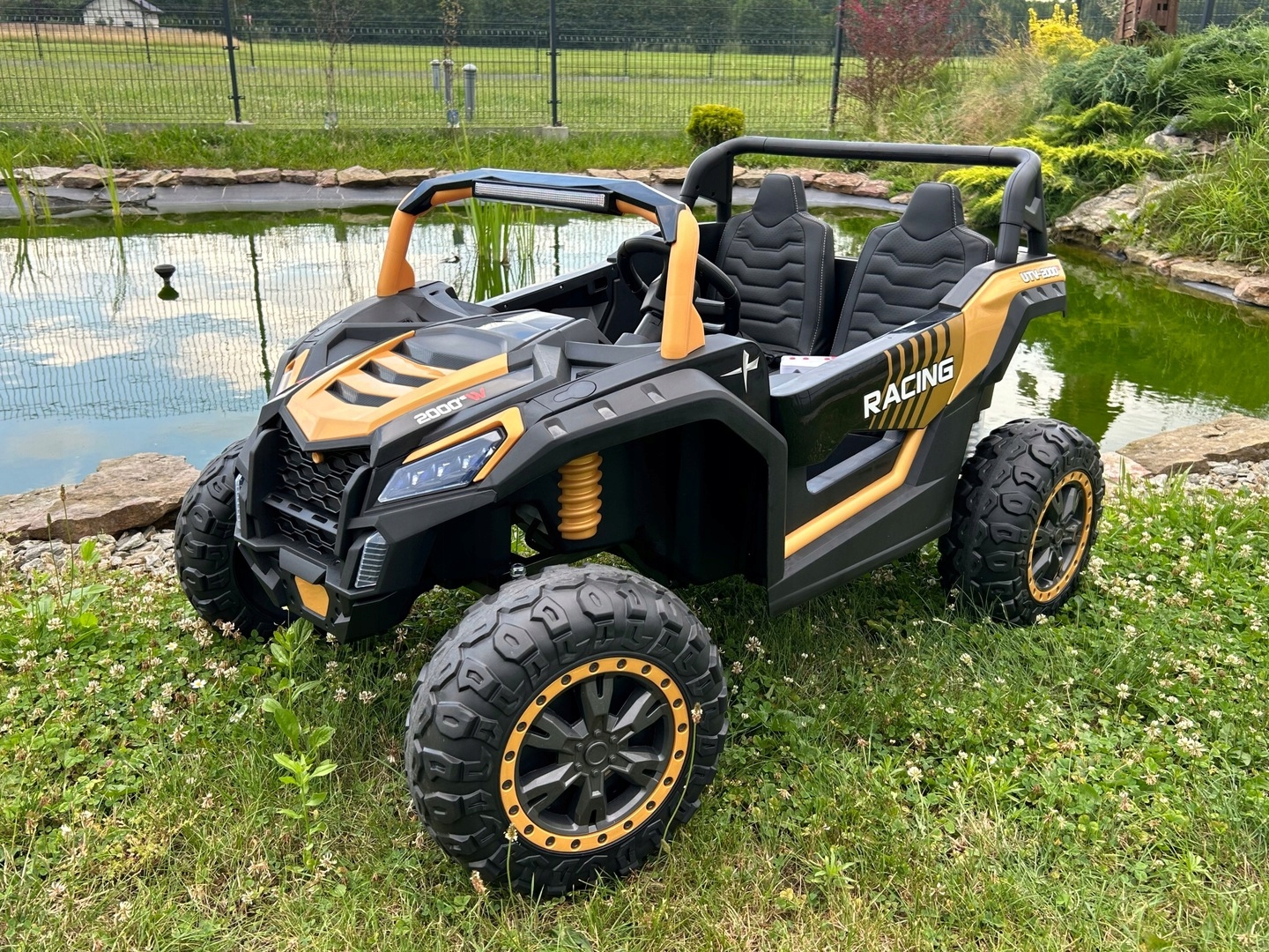 Pojazd elektryczny dla dziecka Buggy napędzany jest czterema mocnymi silnikami 24V każdy o mocy 200W zasilanymi 24V 14Ah akumulatorem.