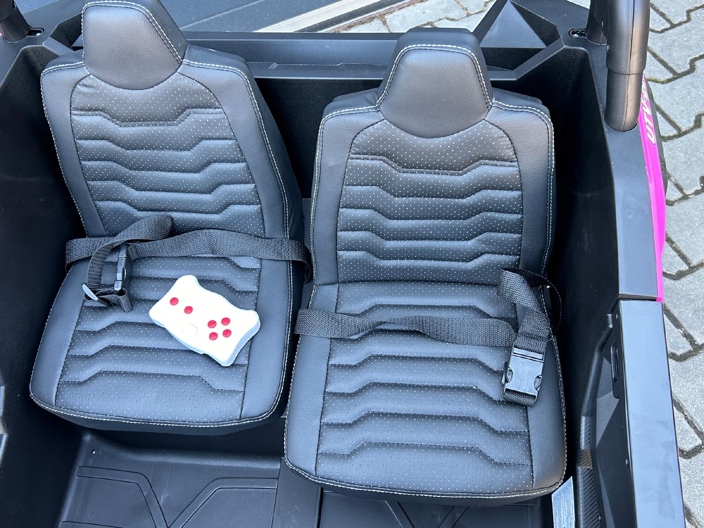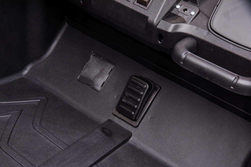 Pojazd posiada dwa oddzielne regulowane miękkie fotel z dwoma pasami bezpieczeństwa. Łączna szerokość obydwu foteli to aż 61cm.