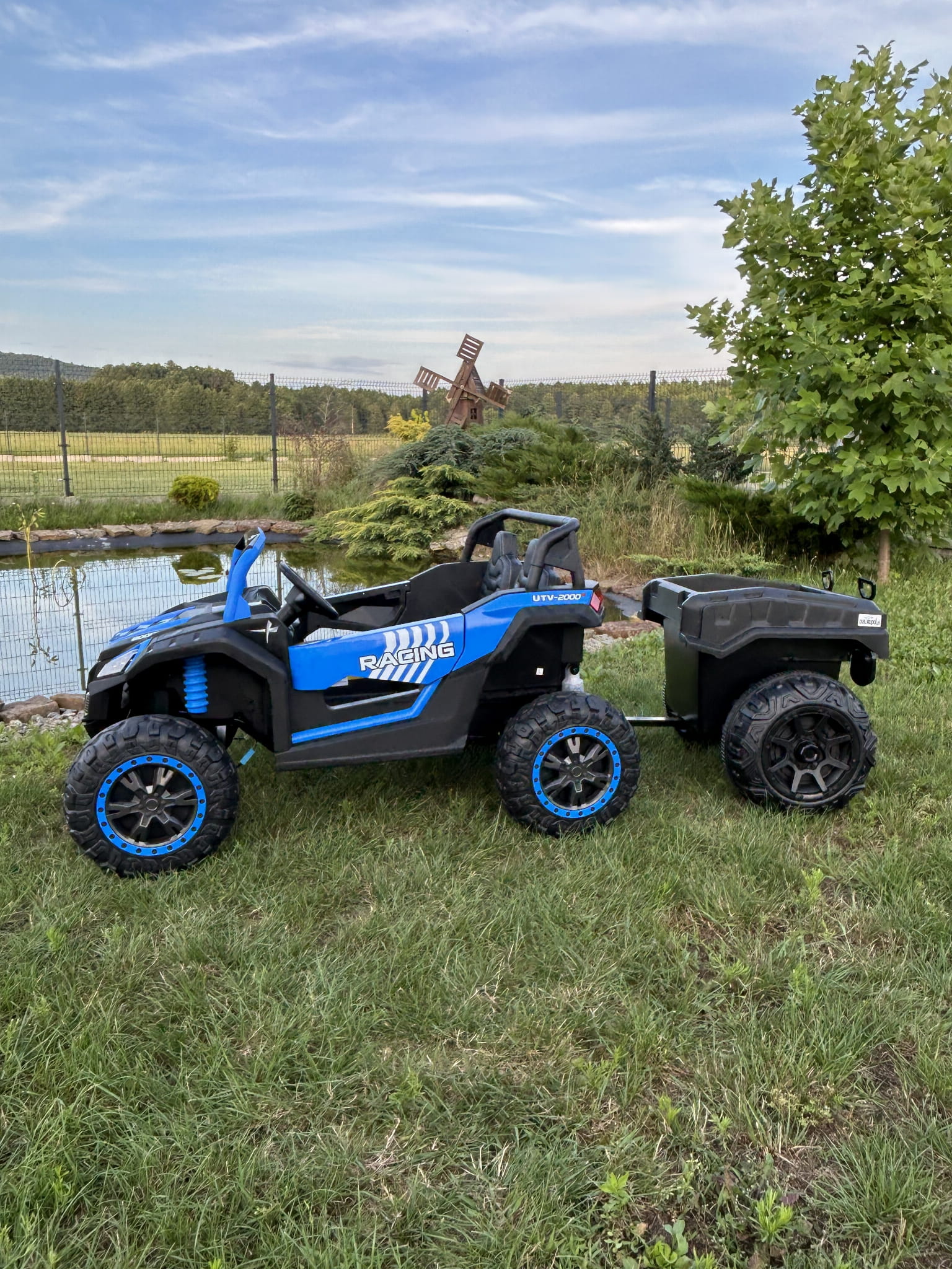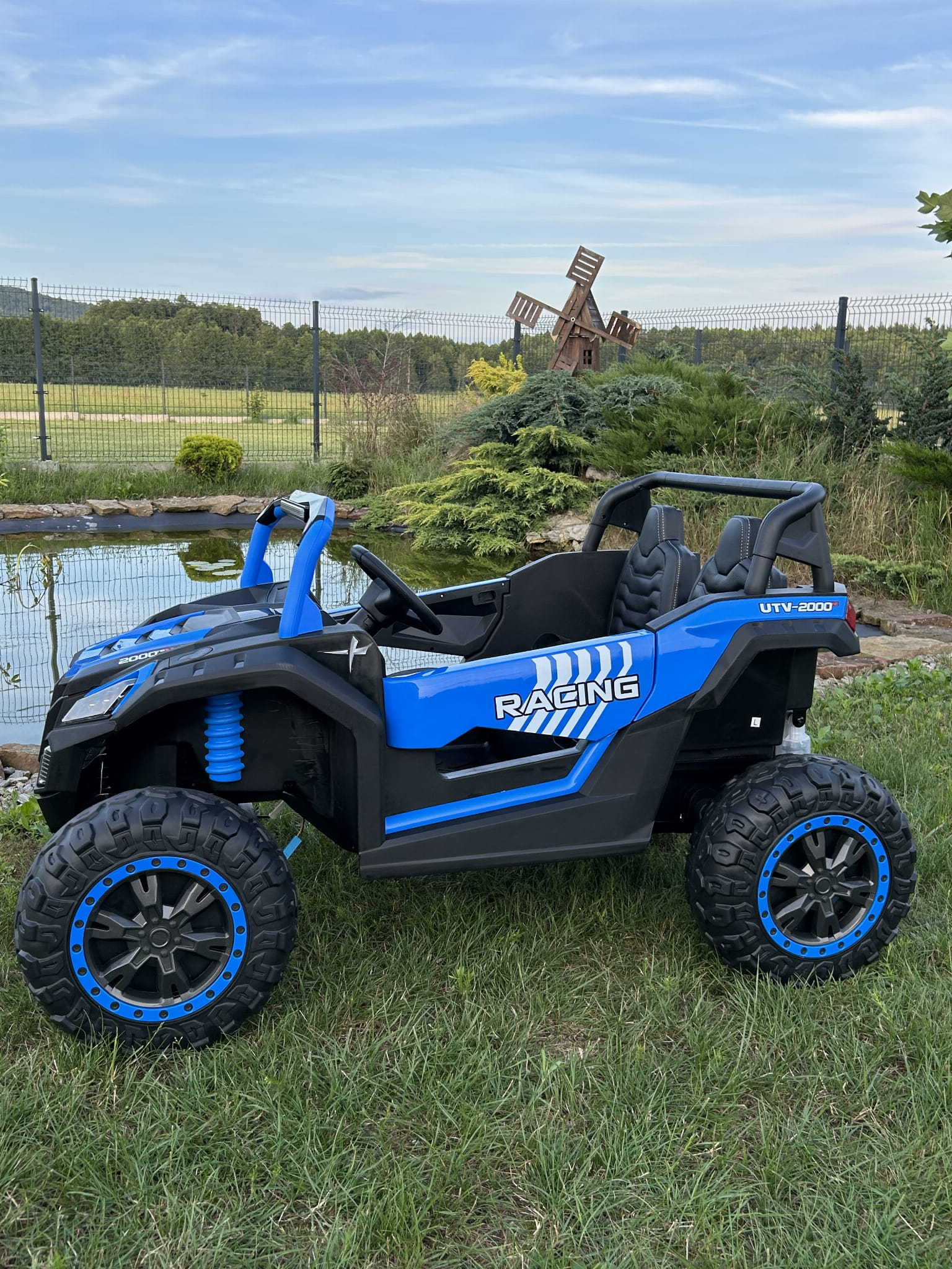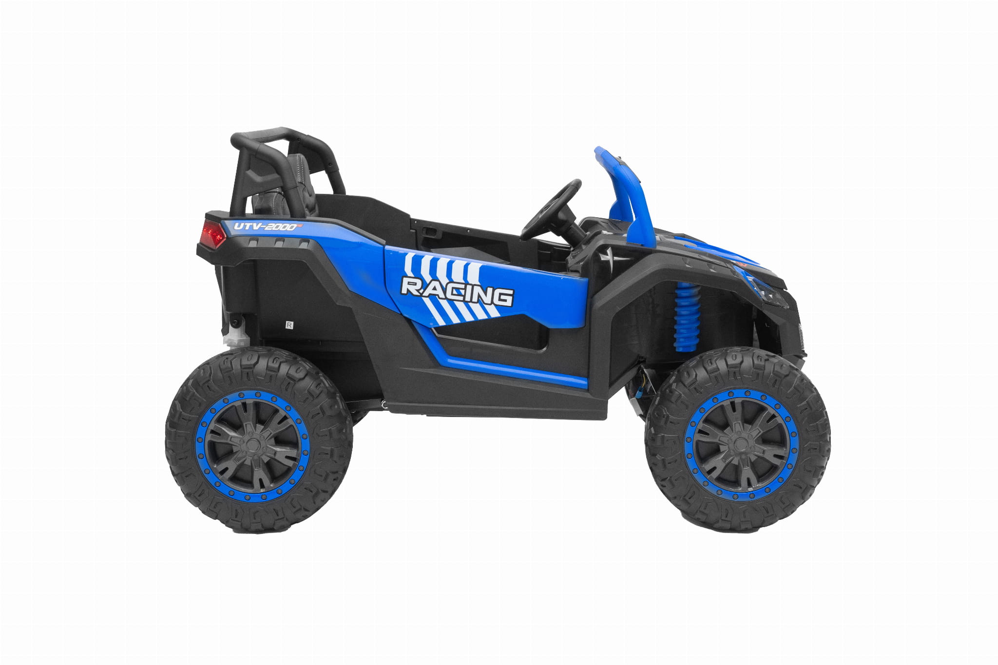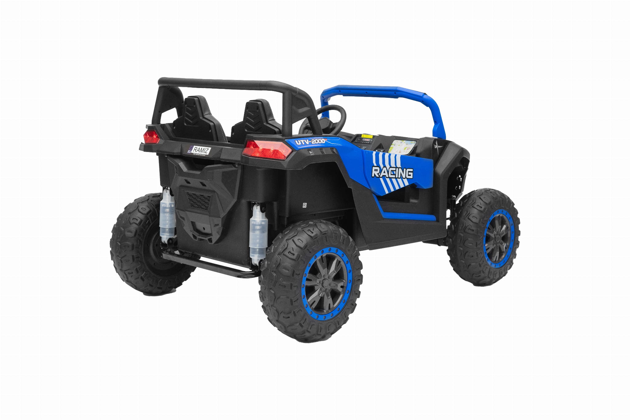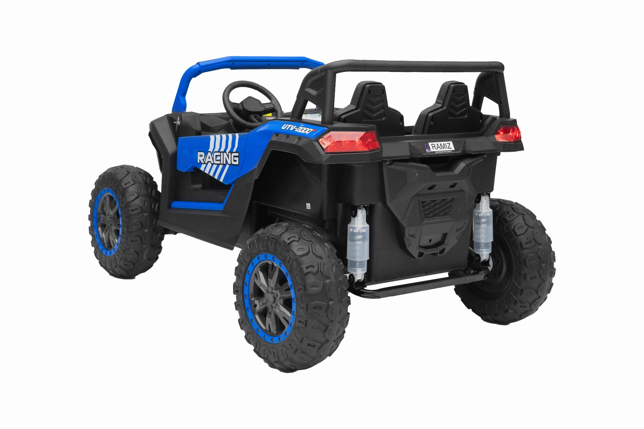 Posiada wygodne siedzenia, wyposażone w pas bezpieczeństwa oraz pilot zdalnego sterowania dla rodzica, który pozwala sterować samochodem w przód i tył a także w lewo i prawo.