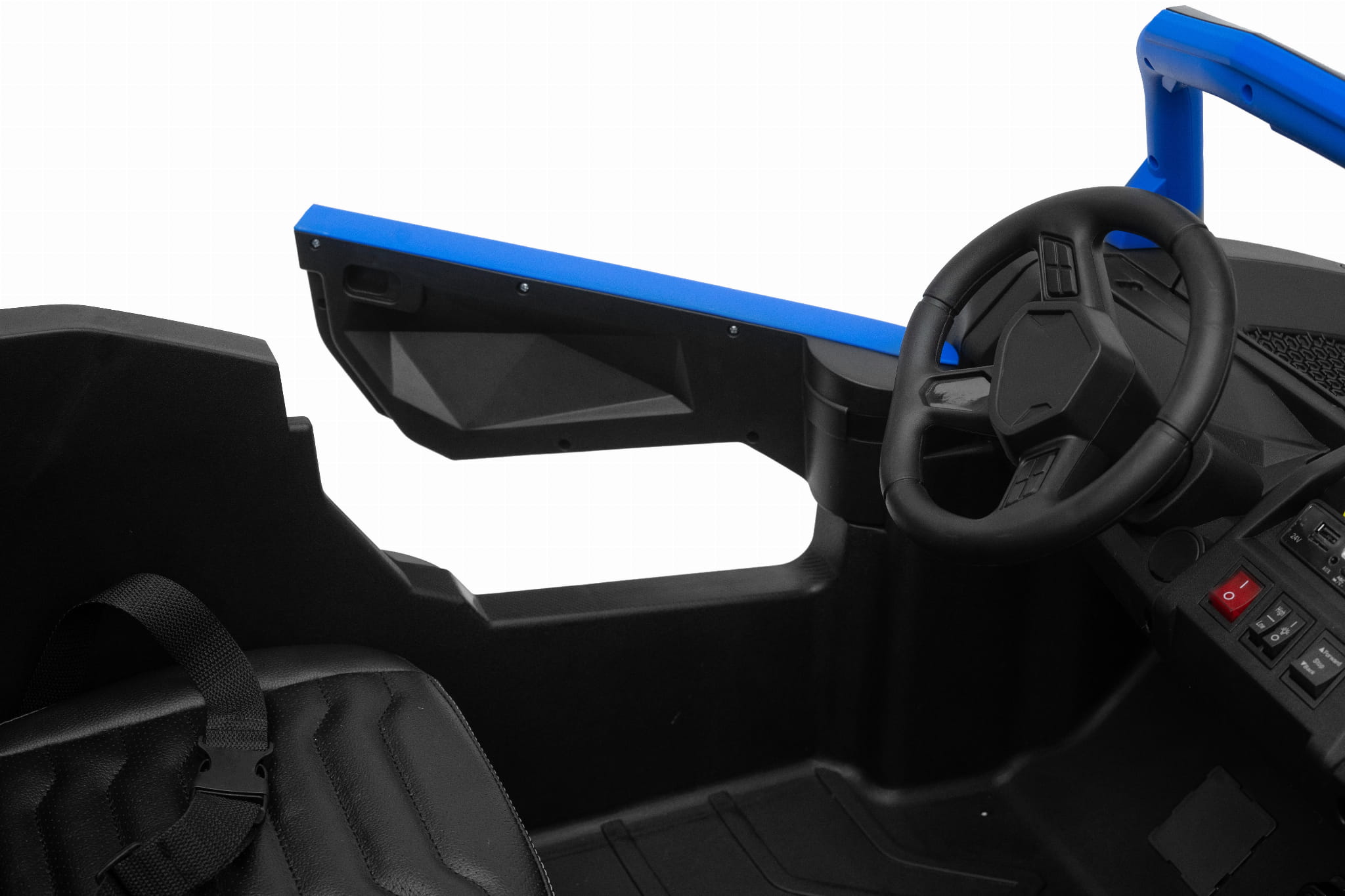 Pojazd posiada dwa oddzielne regulowane miękkie fotele z dwoma pasami bezpieczeństwa.