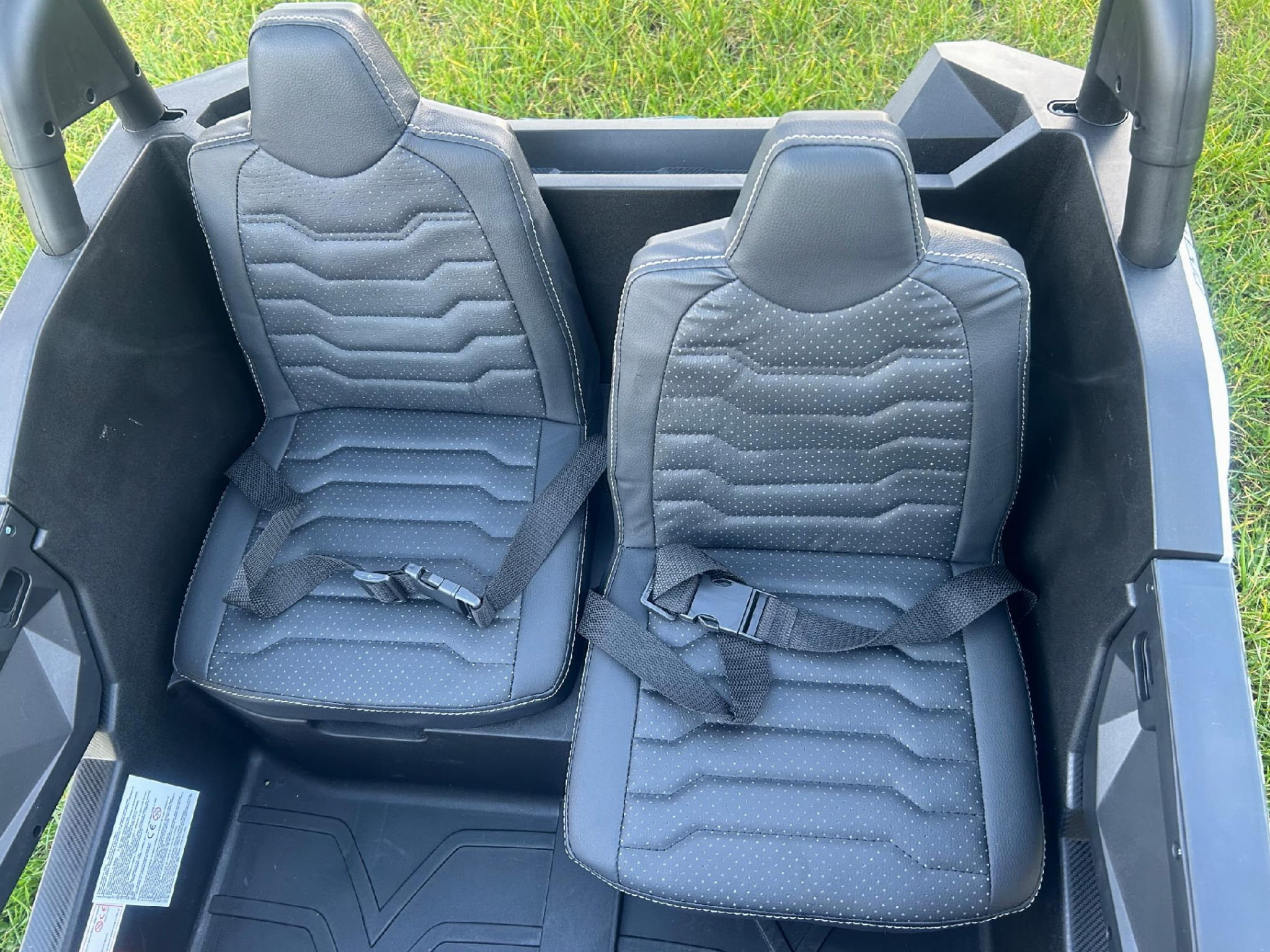 Pojazd posiada dwa oddzielne regulowane miękkie fotel z dwoma pasami bezpieczeństwa. Łączna szerokość obydwu foteli to aż 61cm.