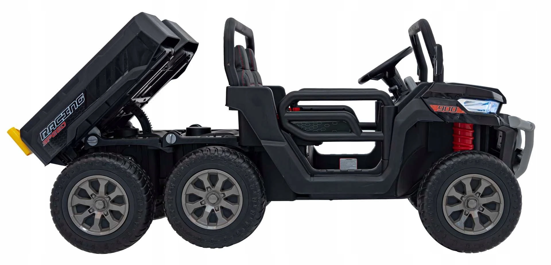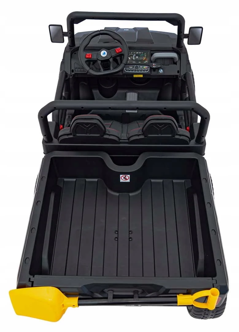 Pojazd Farmer Truck Speed 900 Czarny to dwuosobowe auto elektryczne dla dzieci, które wyróżnia się funkcją elektrycznie podnoszonej wywrotki oraz napędem 4x4. Jest to solidny model rolniczo-terenowy, idealny do zabawy w ogrodzie, oferujący realistyczne wrażenia z jazdy dzięki piankowym kołom EVA i miękkiemu siedzeniu z ekoskóry.