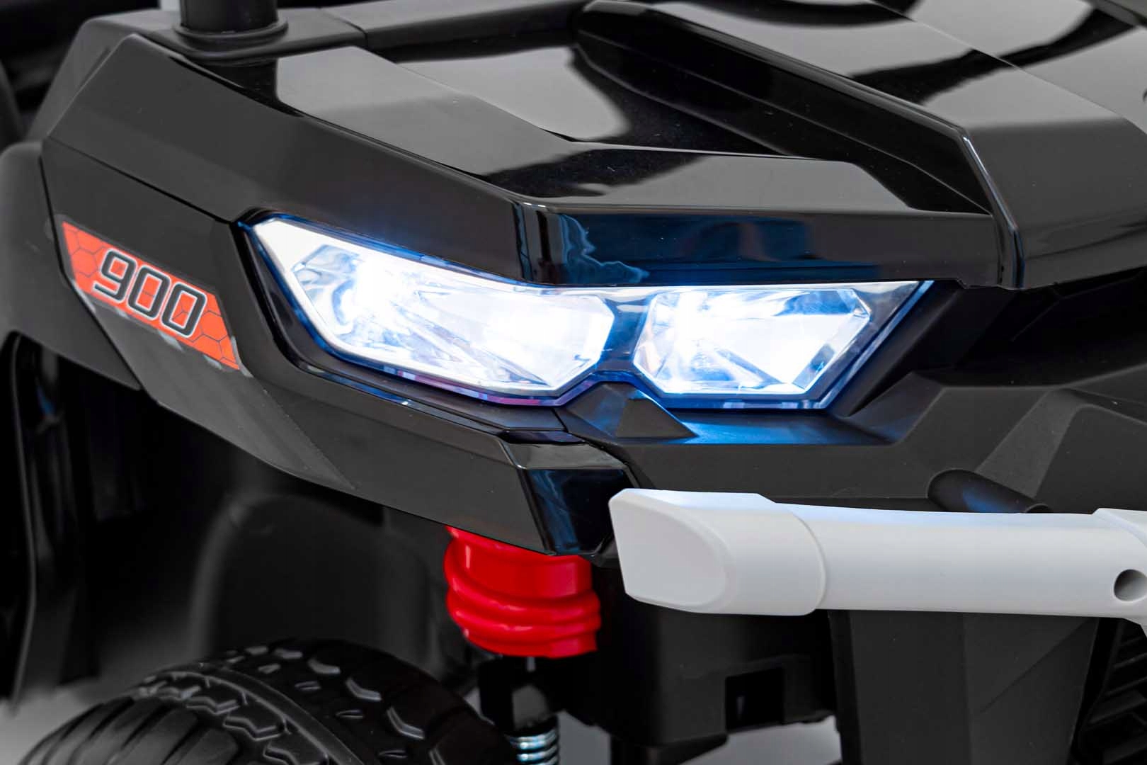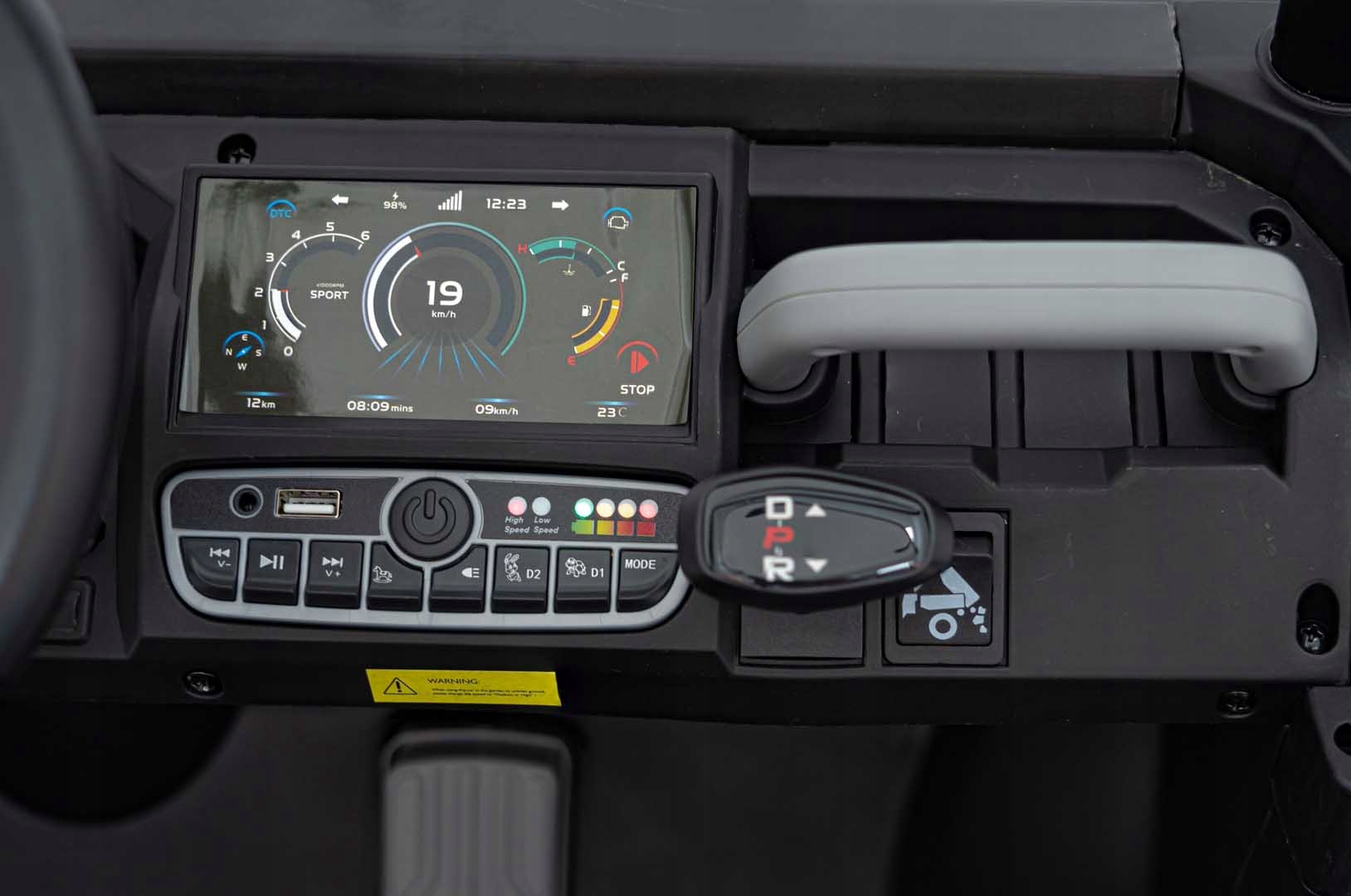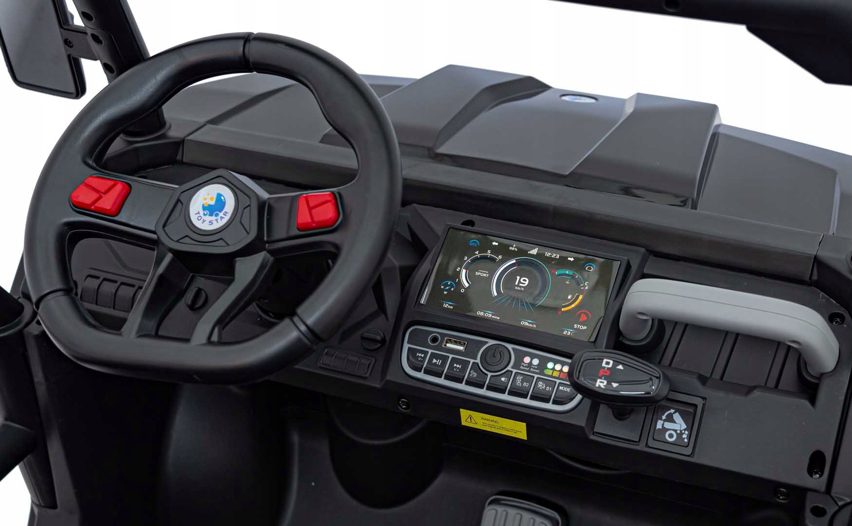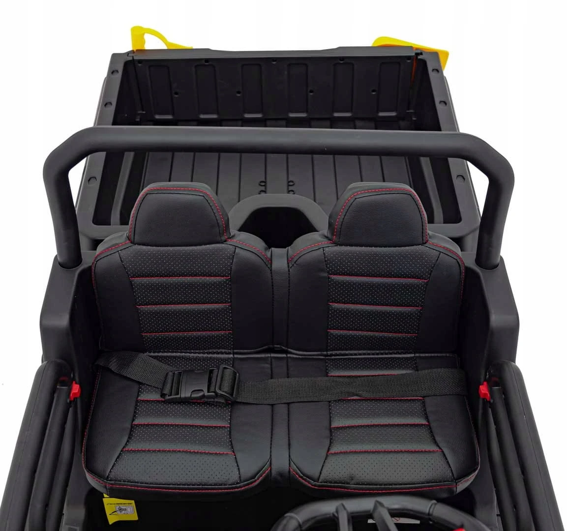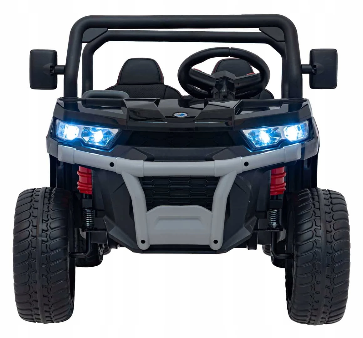 - Bezpieczeństwo: Pilot zdalnego sterowania 2.4GHz dla rodzica z przyciskiem STOP, system wolnego startu oraz 3 prędkości wybierane z pilota.