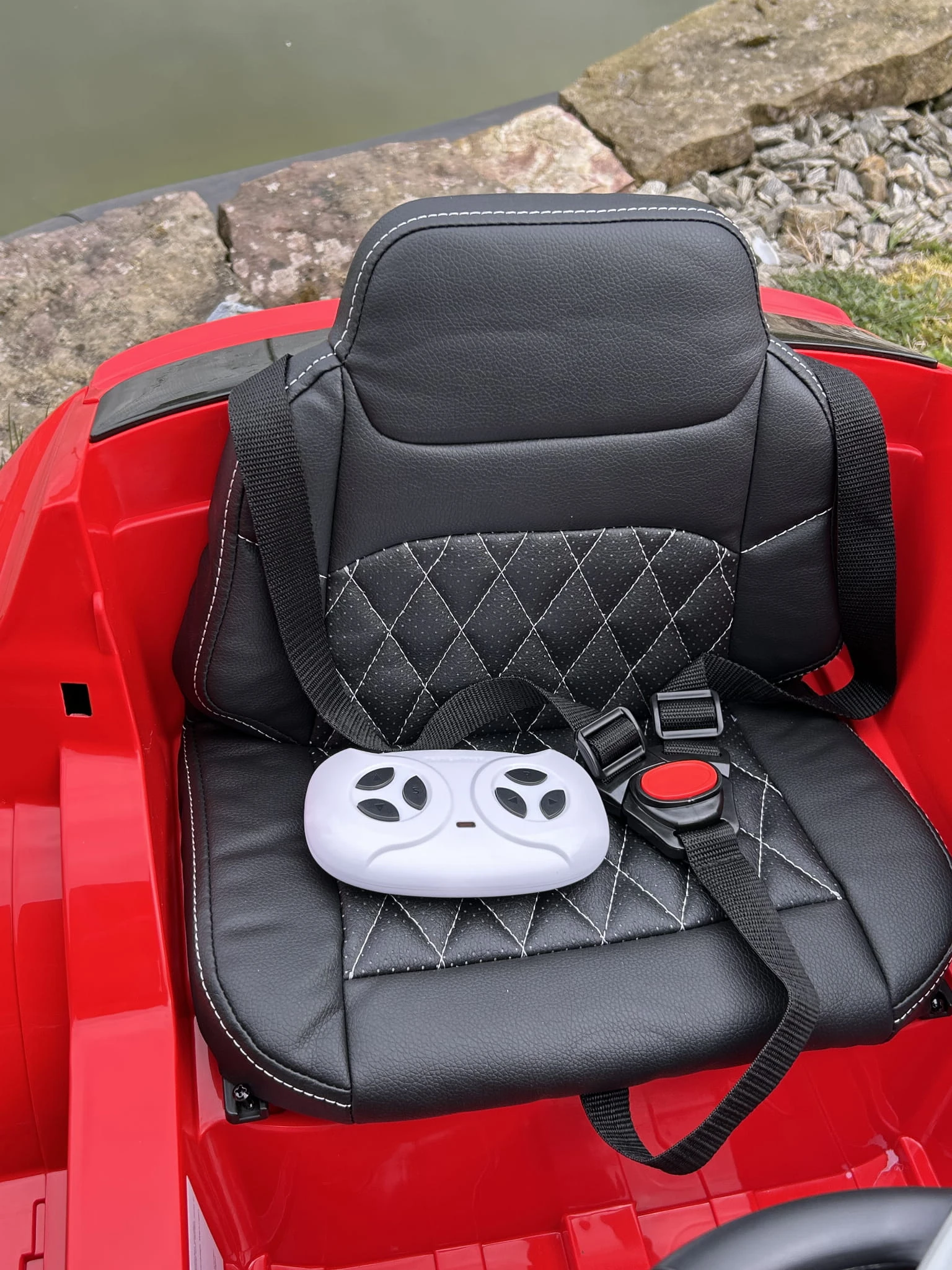 Samochód posiada hamulec, działający po zdjęciu nogi z pedału gazu. Prędkości pojazdu można ustawić na pilocie, wówczas dziecko jedzie z taką prędkością jaką ustawił rodzic. Rodzic dzięki pilotowi 2,4GHz ma pełną kontrole nad pojazdem co zapewnia bezpieczne używanie pojazdu. Dziecko w samochodzie ma możliwość zmiany kierunku jazdy na przód, tył za pomocą lewarka.
