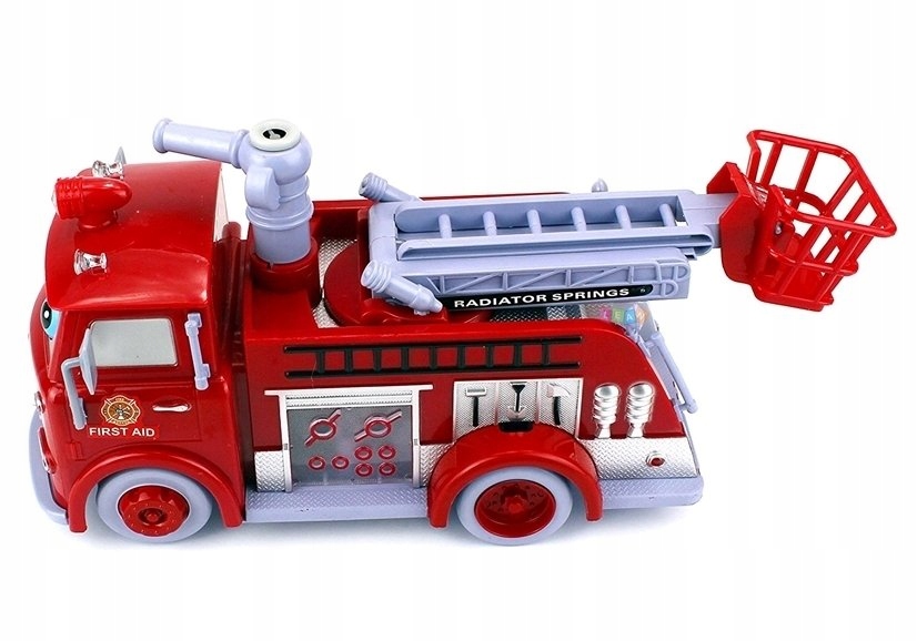 Wydaje odgłosy charakterystyczne dla syreny strażackiej, miga na czerwono kogutem oraz na niebiesko — światełkami znajdującymi się na dachu, podnosi i rozsuwa drabinę, podświetlając ją na zielono, a także obraca rakietką wodną o 45 ° w lewą i prawą stronę. Ponadto kręci kołami i koszem i co najważniejsze — zabawnie porusza na boki oczkami, a także wysuwa język. Interaktywny wóz strażacki posiada inteligentny system omijania przeszkód. Gdy na jakąś natrafi, samodzielnie zmieni kierunek swojej jazdy.