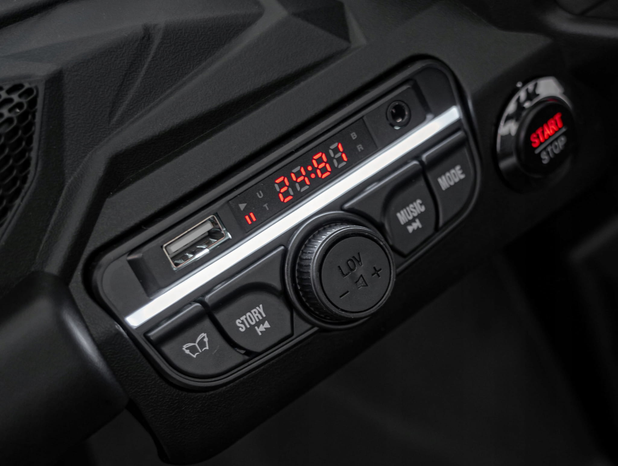 Po przełączeniu przełącznika na desce rozdzielczej na „remote”- mamy pełne sterowanie z pilota nad pojazdem dziecka. W tym momencie to my kontrolujemy pojazd za pomocą pilota - sterujemy nim w przód, w tył, w lewo, w prawo czy zmieniamy prędkość jazdy.