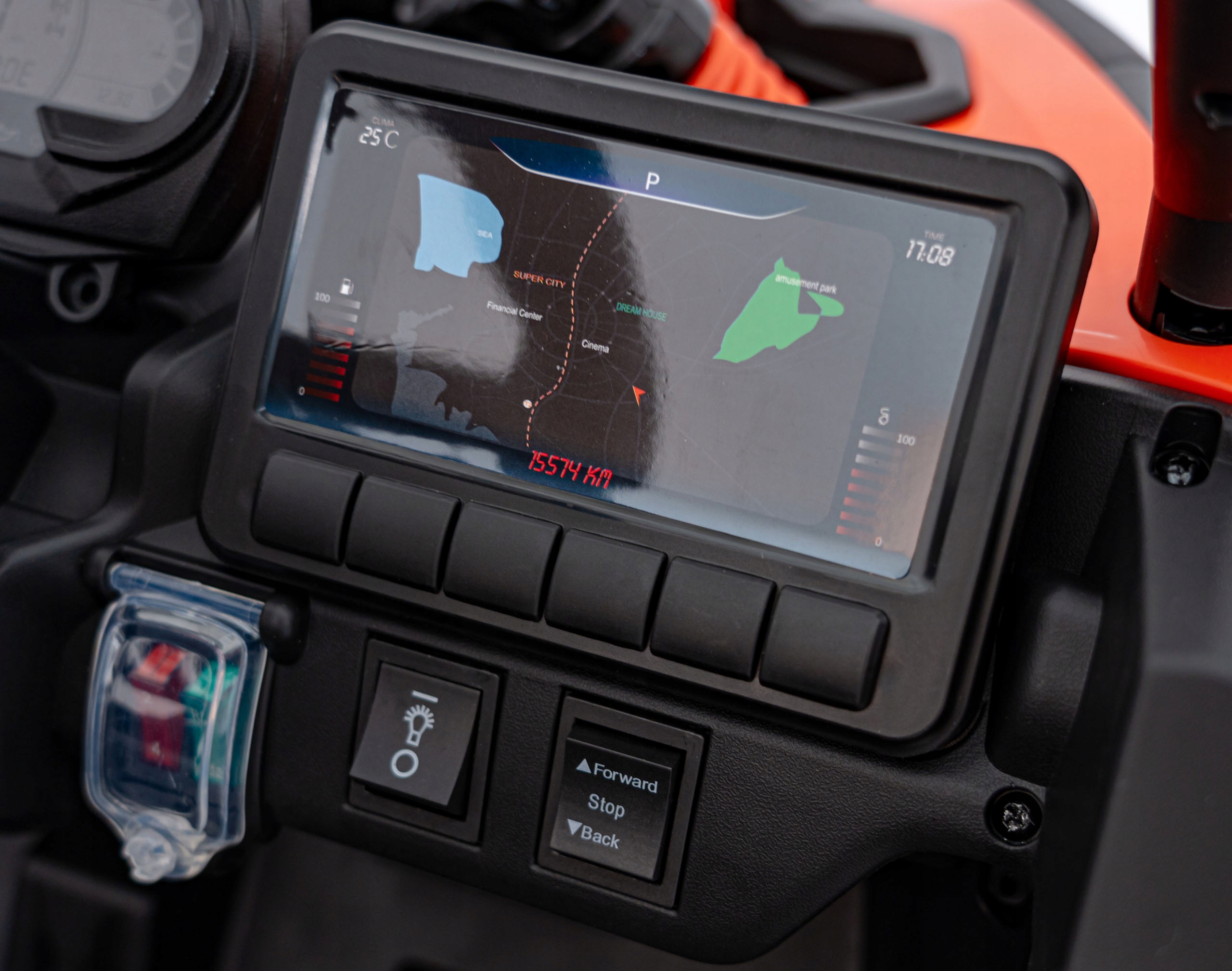 - Po przełączeniu przełącznika na desce rozdzielczej to nasza pociecha zaczyna sterować pojazdem .