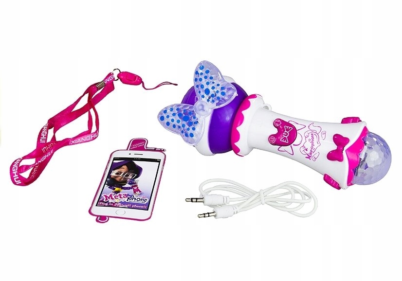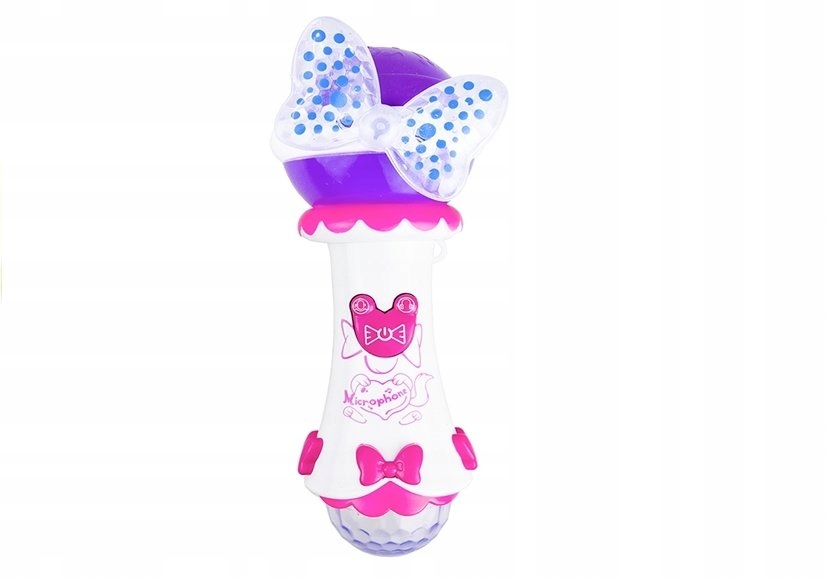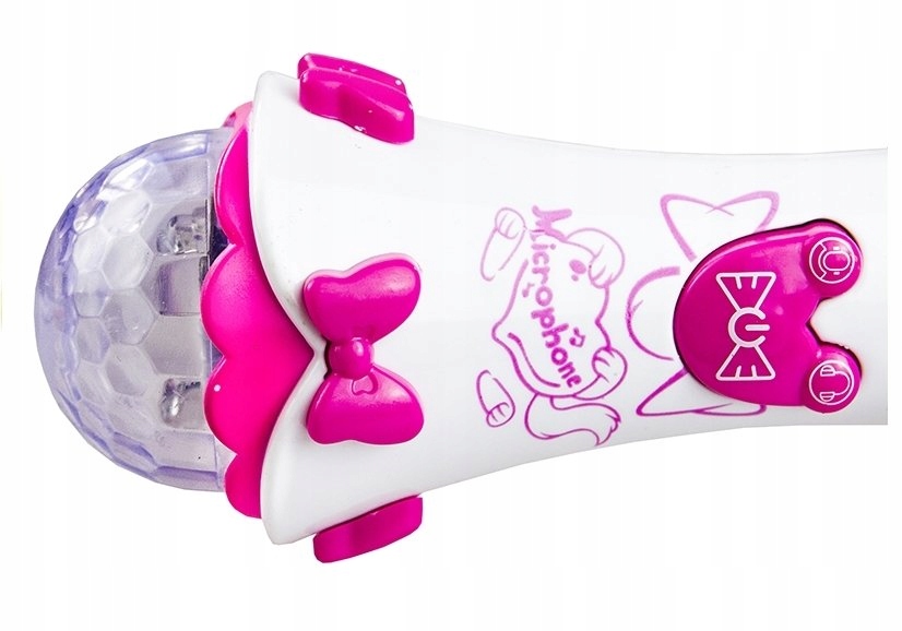 Obecność muzyki w życiu dziecka ma pozytywny wpływ na jego prawidłowy rozwój. Dziewczęcy mikrofon do karaoke jest doskonałym prezentem dla każdej artystki, która kocha występować na domowej scenie, tańcząc i śpiewając. Różowo-fioletowy mikrofon zaprojektowano z myślą o najmłodszych. Ozdobiono go detalami w białym kolorze, dzięki czemu prezentuje się rewelacyjnie. Kokardka i kula, umieszczona w dolnej części zabawi, świecą podczas występu, urozmaicając zabawę. Wielofunkcyjna zabawka pobudza rozwój dziecka na kilku płaszczyznach — usprawnia słuch, zdolności muzyczne i rytmiczne małej gwiazdy, a także polepsza wyobraźnię, koncentrację i koordynację ruchową.