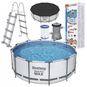 Basen stelażowy Steel Pro MAX 366x122 12FT BESTWAY 5w1 + Drabinka + Pokrywa + Pompa Filtr