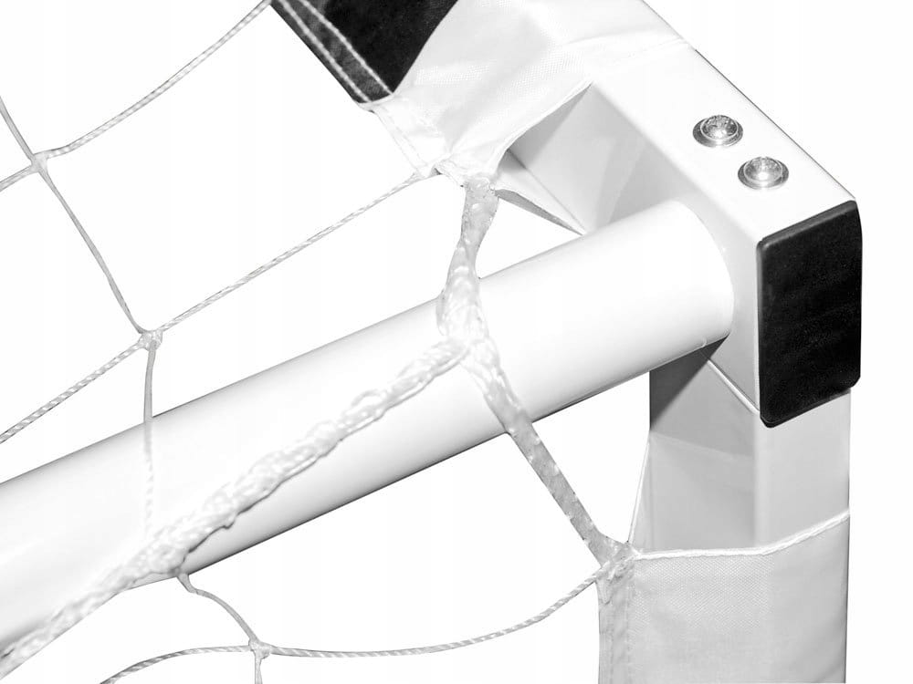 32 mm i grubości ścianki 0.8 mm, oraz cieńszych o średnicy 28 mm i grubości ścianki 0,8 mm. Montaż zestawu jest bardzo prosty i zamyka się w czterech krokach. Elementy łączą się stabilnie, tworząc charakterystyczny kształt piłkarskiej bramki. Do zestawu dołączone zostały również haczyki umożliwiające przymocowanie bramki do podłoża. W zestawie znajduje się siatka.