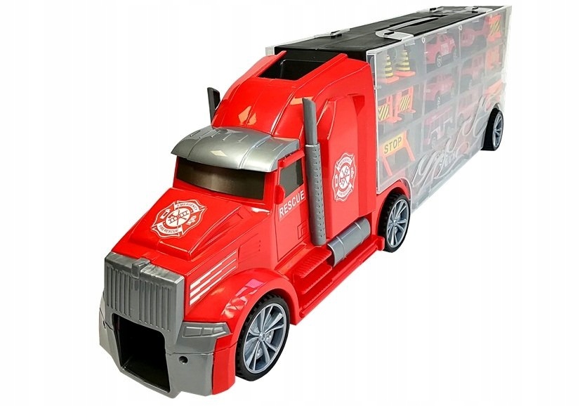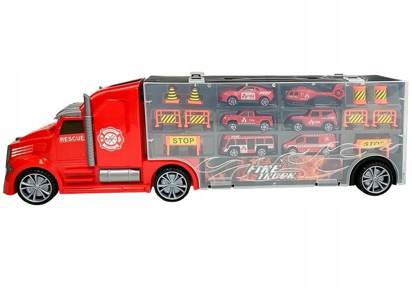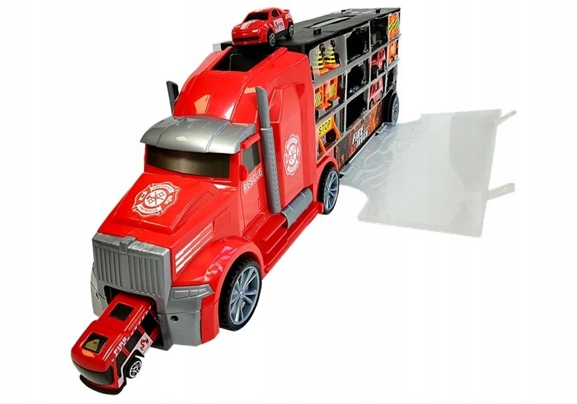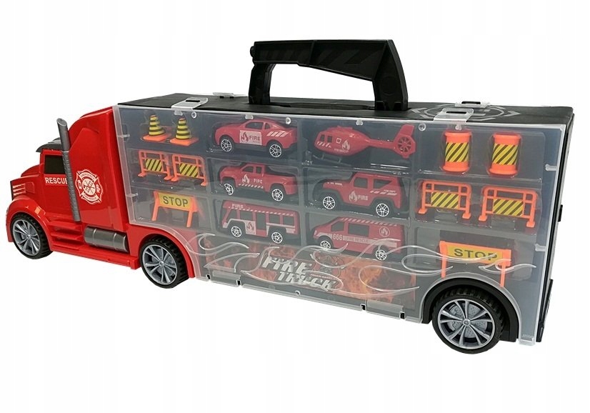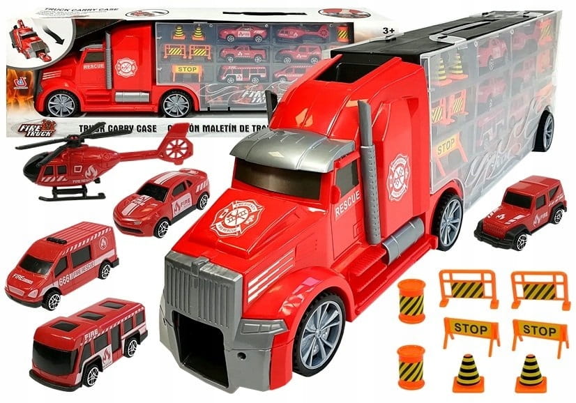 Jeżeli Twoje dziecko jest fanem straży pożarnej to będzie idealny zestaw dla niego. Transporter jest gotowy do załadowania pojazdów i przetransportowania ich w odpowiednie miejsce na akcje ratunkową. Ciężarówka z sorterem będzie rewelacyjnym prezentem dla dziecka, które uwielbia służby ratunkowe i różnego rodzaju pojazdy. Transporter ma wiele funkcji, które dziecko będzie z ciekawością okrywać. To unikalna i bardzo ciekawa zabawka, dodatkowe elementy taki jak znaki drogowe mogą też zaszczepić zainteresowanie. Wielofunkcyjne autko będzie doskonale prezentować się w zbiorach dziecka, wyróżniając się przede wszystkim designem, szeregiem zastosowań i swym wyposażeniem.