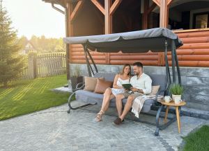 Duża Huśtawka ogrodowa Rozkładana Leżanka Leżak 300kg 2w1 + POKROWIEC
