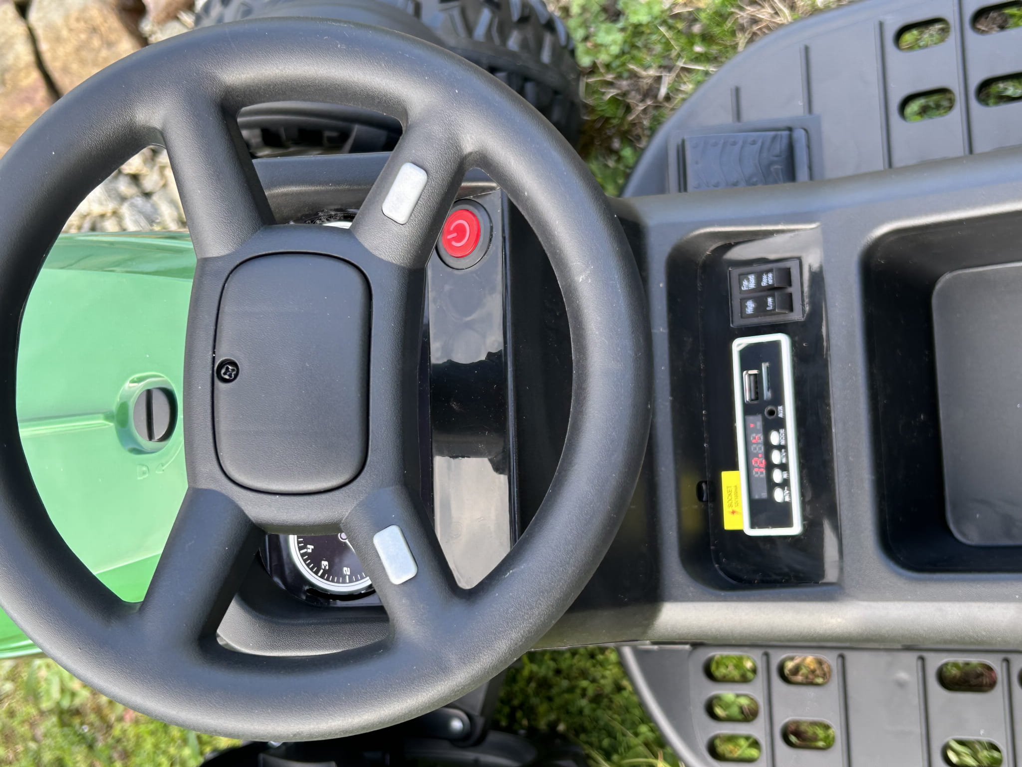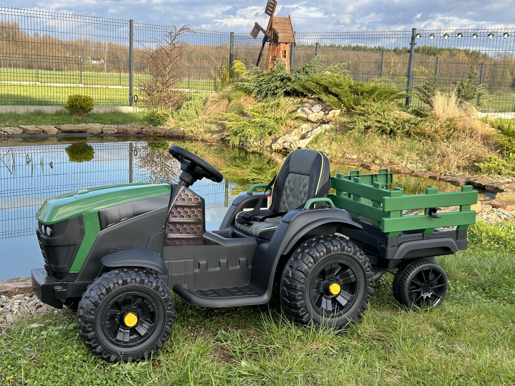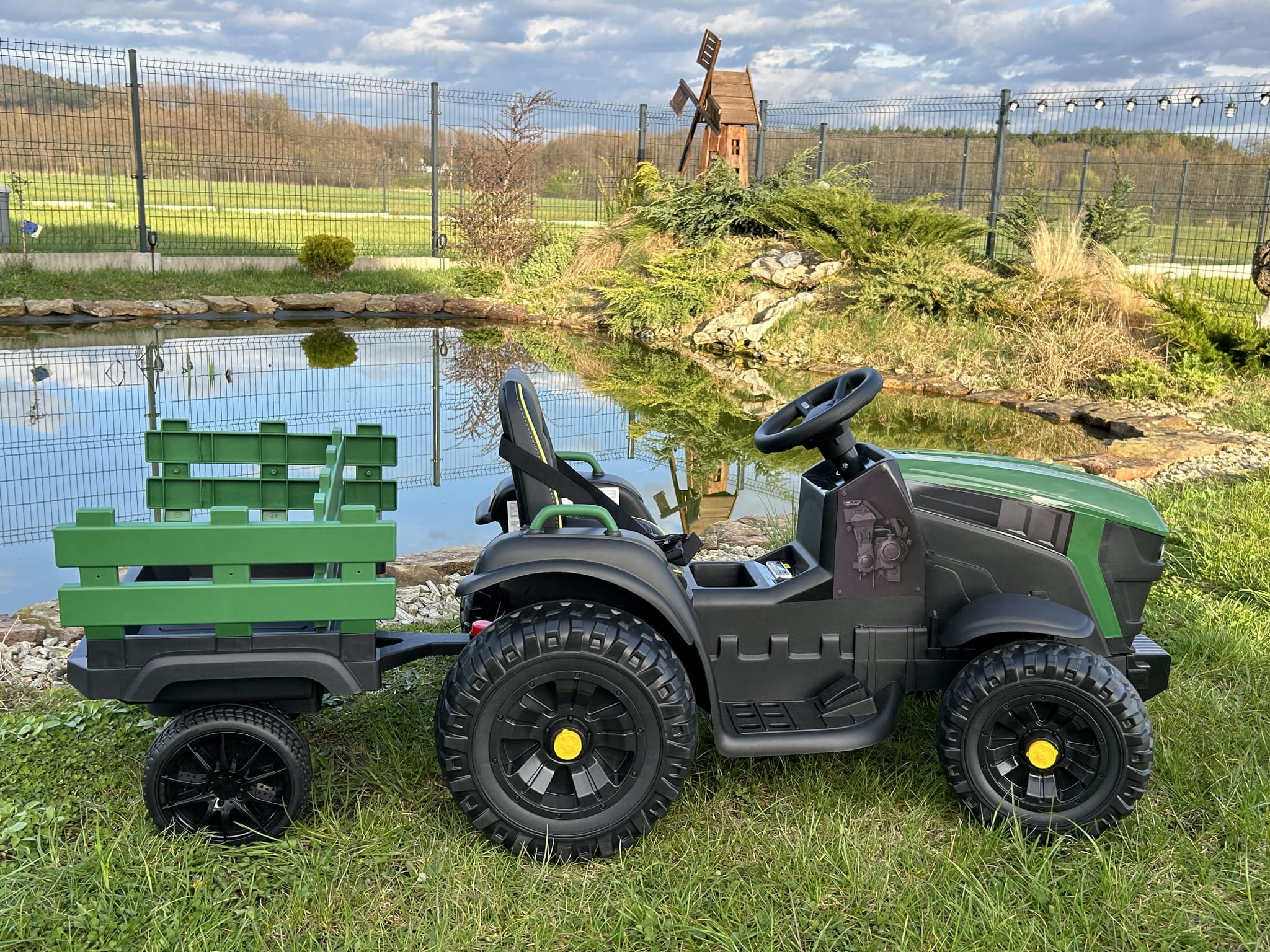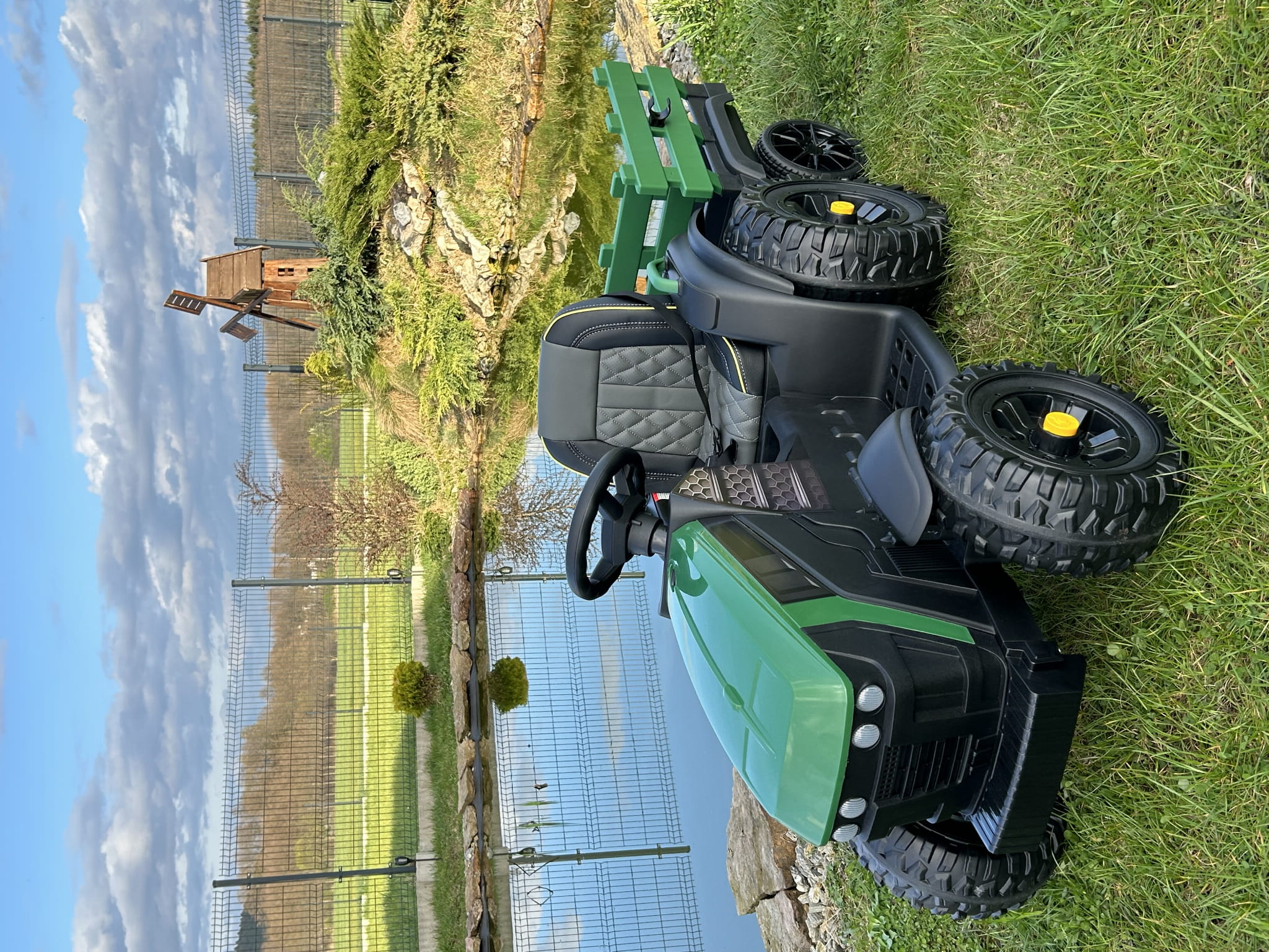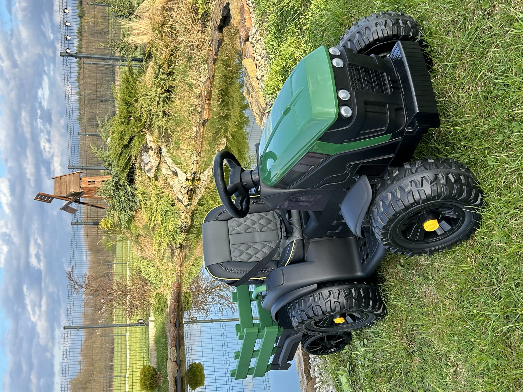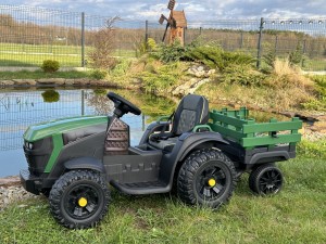 Traktor napędzany jest 2 mocnymi silnikami 2 x 12V 45W + 1 żelowy akumulator 12V 7Ah.