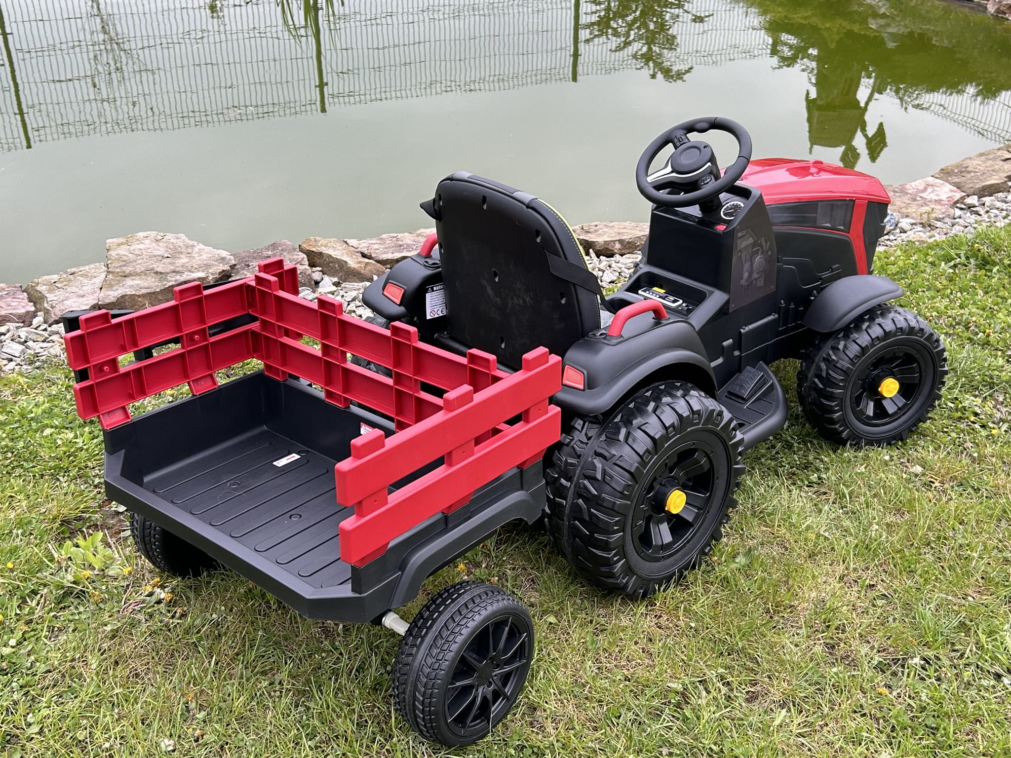 Traktor na akumulator dla małego traktorzysty sprawi wiele frajdy każdemu małemu farmerowi. Traktor wykonany z najwyższej jakości materiałów o wysokiej odporności na pęknięcia. Fantastyczny sposób na zabawę w ogrodzie lub na placu zabaw. Teraz możecie Państwo zapewnić odpowiedni sprzęt małemu pomagierowi, dzięki któremu z wielką przyjemnością mały traktorzysta będzie ciągnął np. suche gałęzie lub liście w odpowiednie miejsce lub transportować grabki, łopatki i wiaderka do piaskownicy.