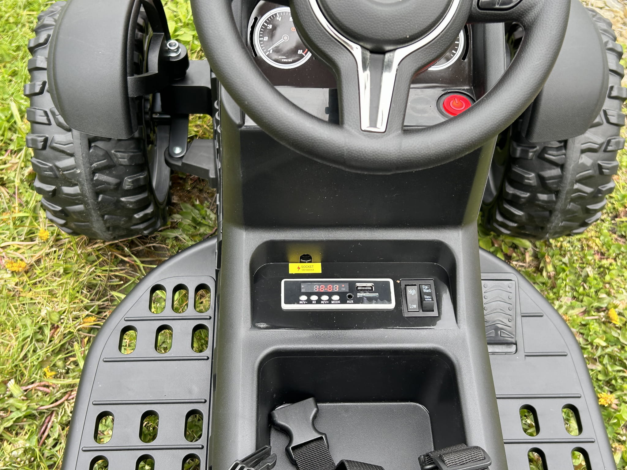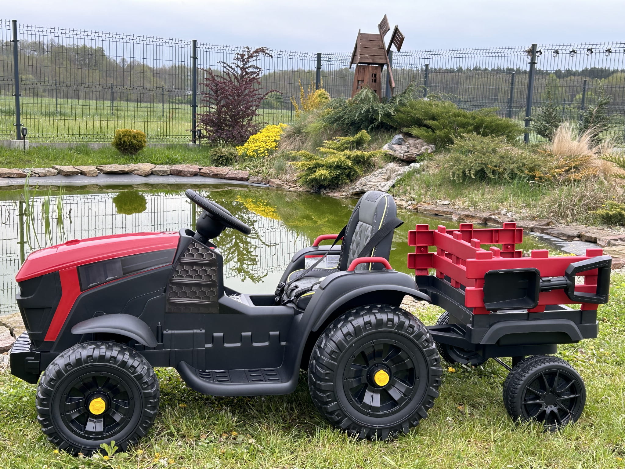Traktor napędzany jest 2 mocnymi silnikami 2 x 12V 45W + 1 żelowy akumulator 12V 7Ah.
