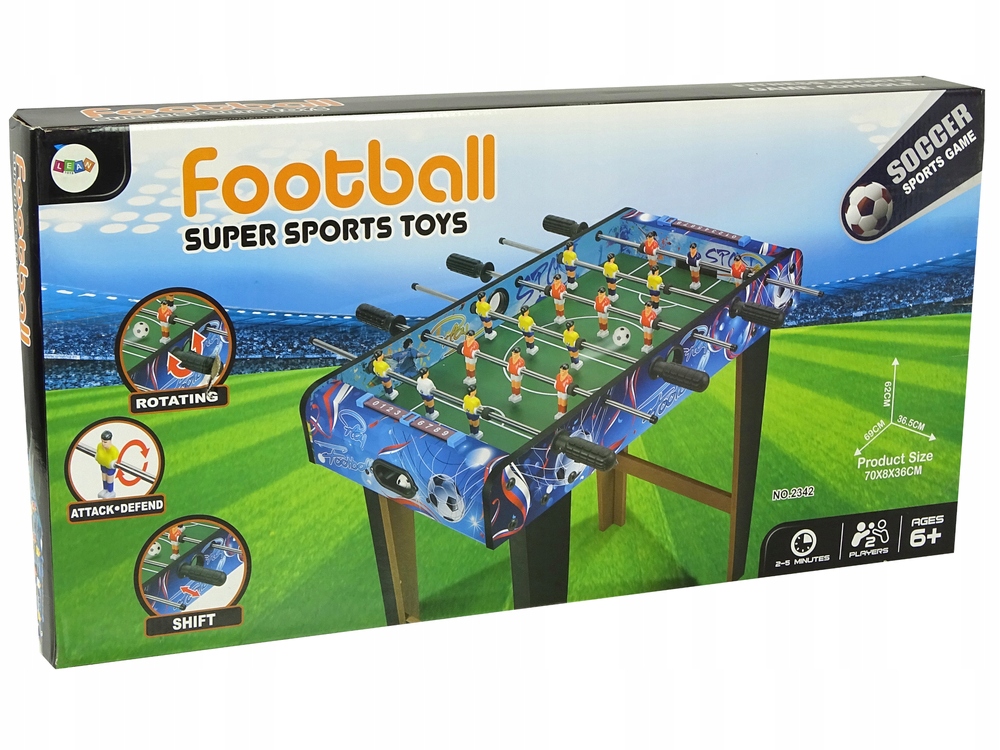 Zasady gry są proste - każdy wybiera, do której drużyny należy, ustawia się po prawidłowej stronie i... gol! Poręczne gałeczki dobrze leżą w dłoni, dzięki czemu drążki są łatwe w nawigacji zawodnikami. Niebiesko- czarne trybuny boiska zabezpieczają boisko, dzięki czemu piłka nie wypadnie za granice murawy. Ponad każdą z bramek znajduje się licznik z przesuwanym elementem, ułatwiający szybkie naliczanie punktów dla obu drużyn.