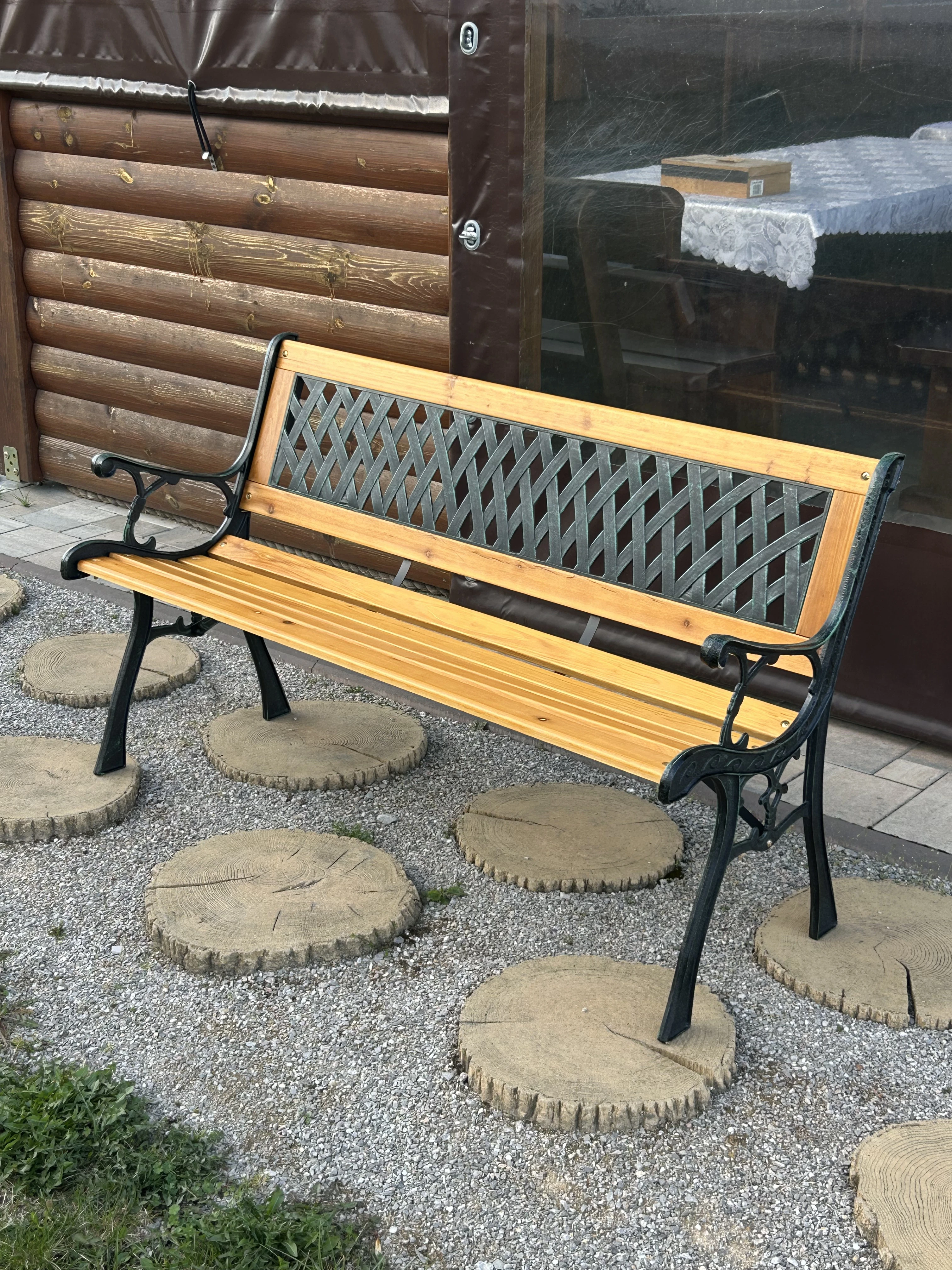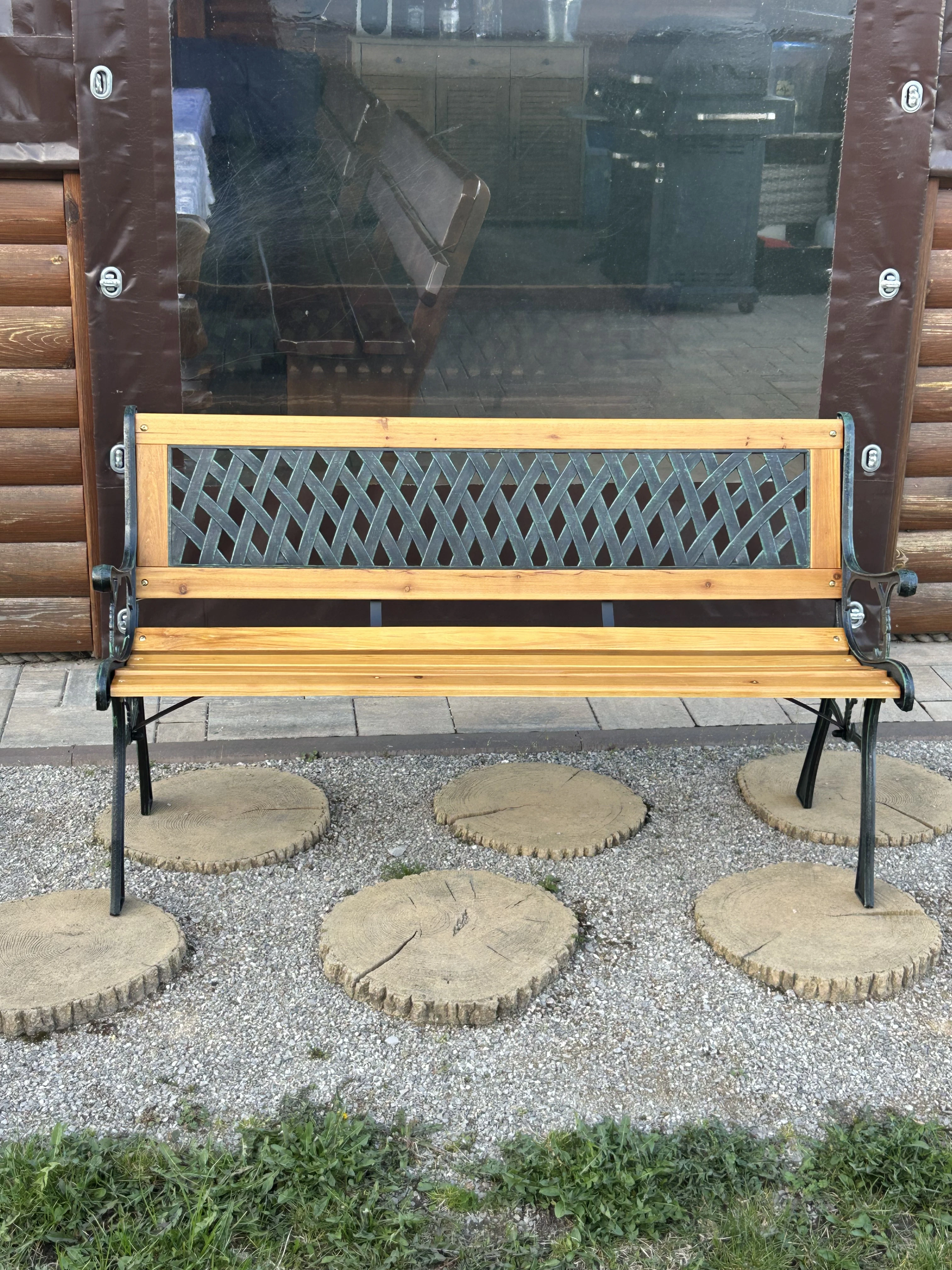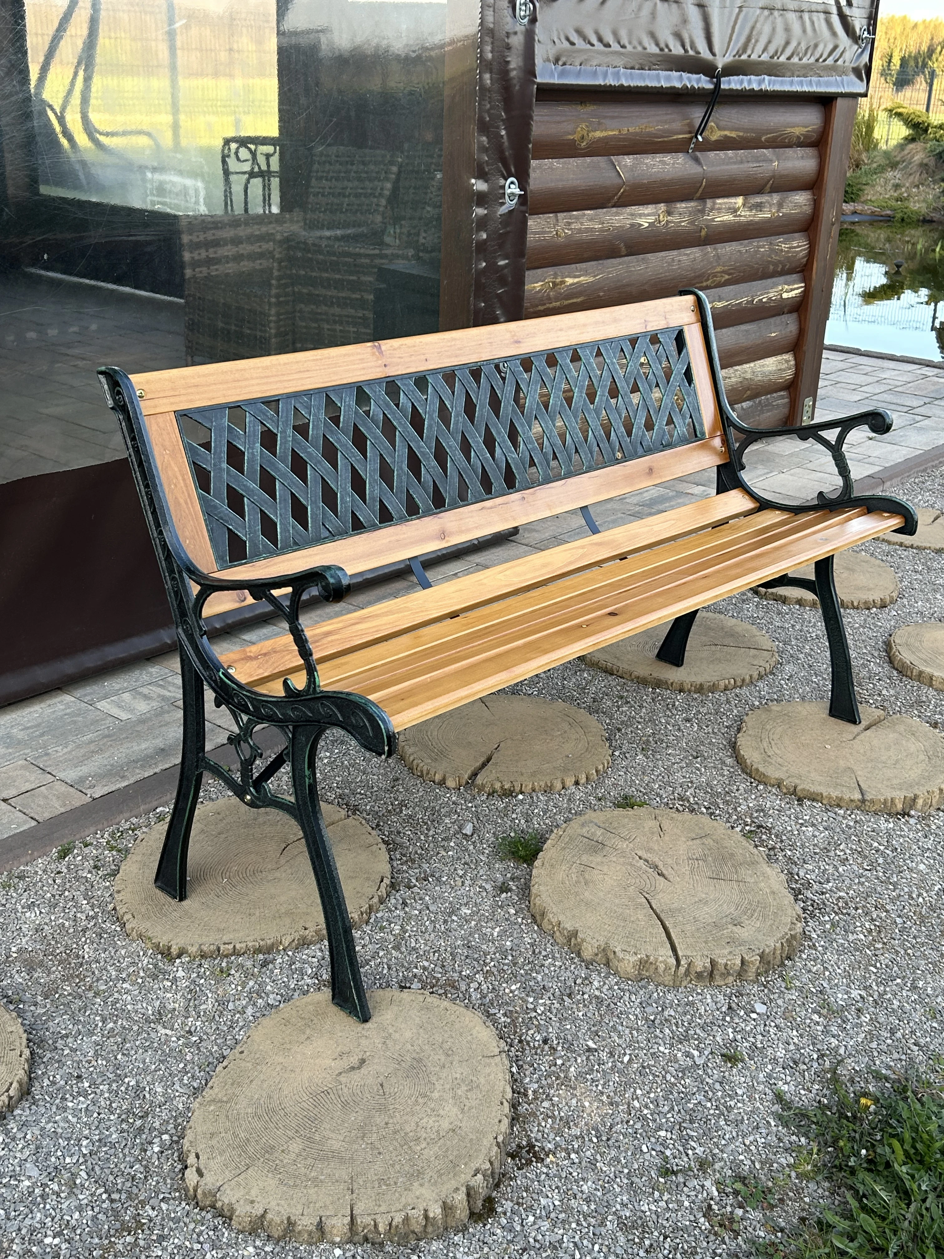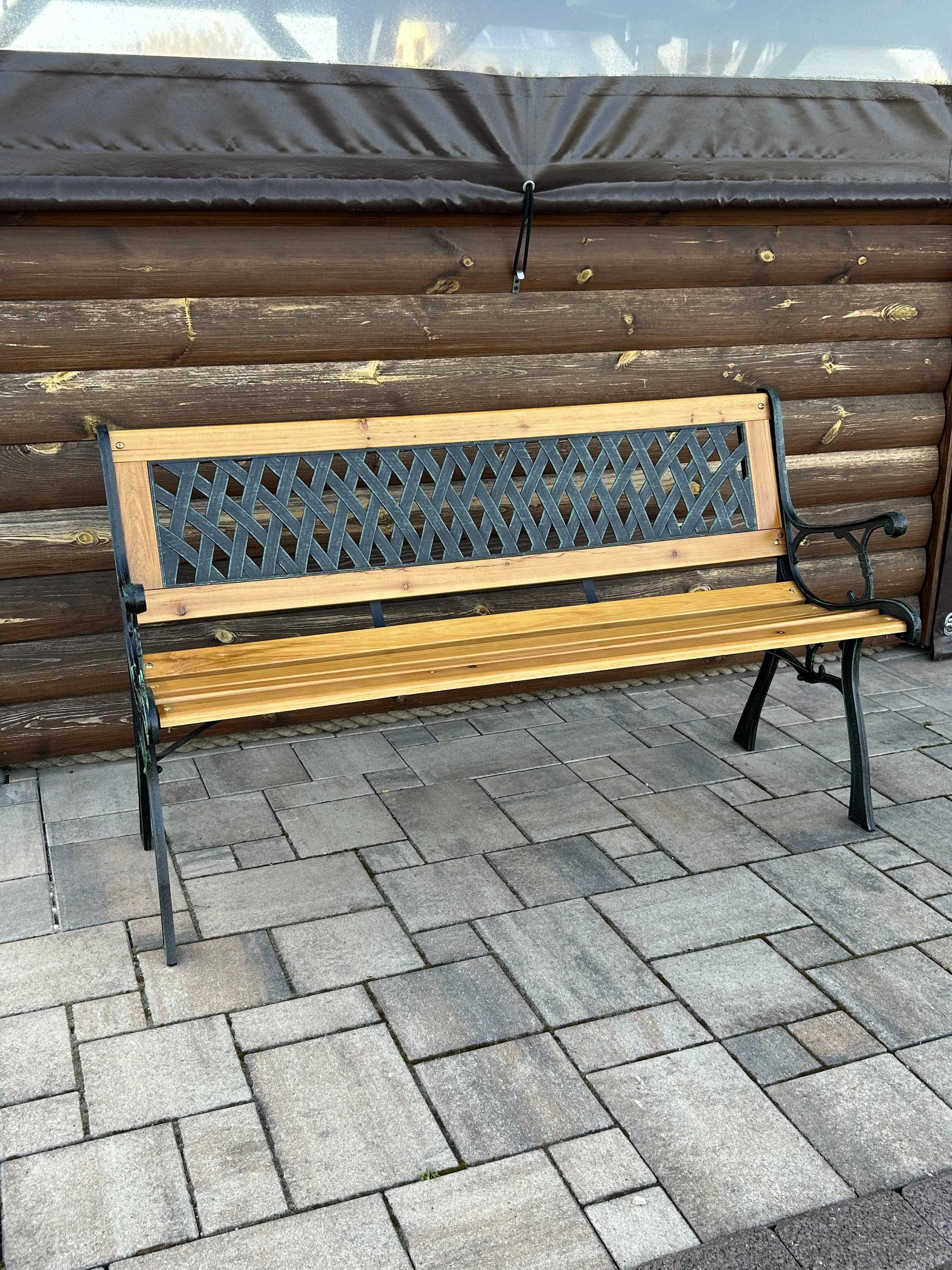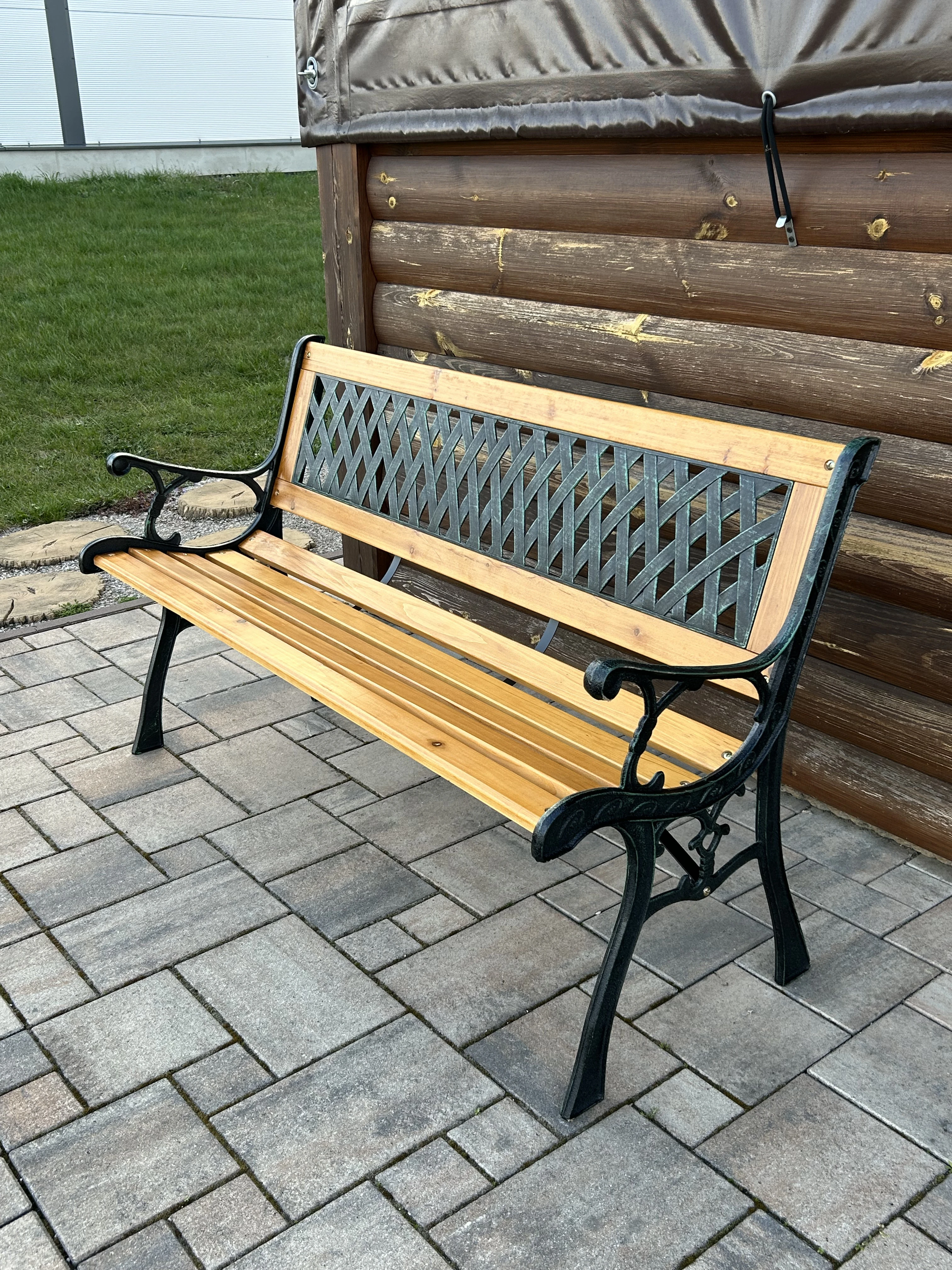 ŁAWKA OGRODOWA DREWNIANA METALOWA Z OPARCIEM