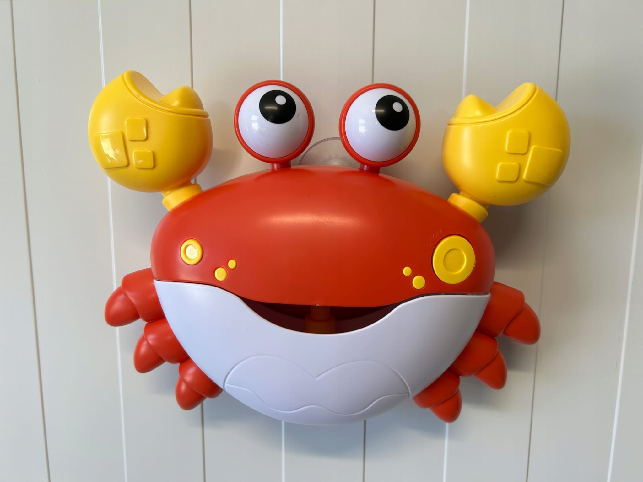 Zabawka jest prosta w obsłudze. Na początek do zabawki należy wlać płyn do kąpieli oraz odrobinę wody. Przyssawki umożliwią zaczepienie zabawki do wanny bądź płytek. Wystarczy włączyć, a z buźki kraba zacznie wydobywać się piana, a z małego głośniczka leci wesoła muzyka.