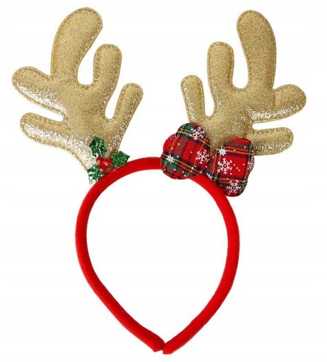 Opaska Świąteczna Renifer Rogi Renifera Brokatowe Kokarda