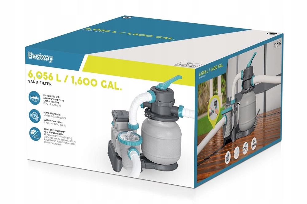 Piaskowa Pompa Filtrująca do basenów BESTWAY 5678 l/h + Złączki + Węże