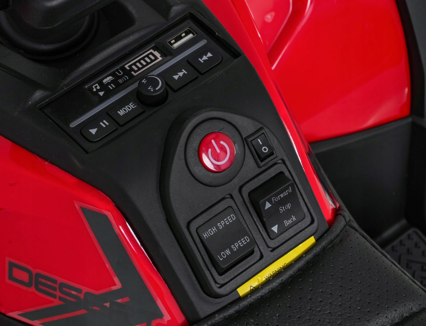 - pilot dla rodzica 2.4GHz z 3 stopniami szybkości i przyciskiem bezpieczeństwa STOP,