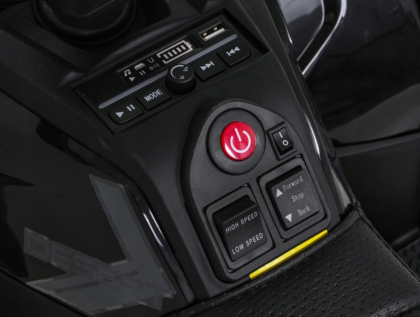 - pilot dla rodzica 2.4GHz z 3 stopniami szybkości i przyciskiem bezpieczeństwa STOP,