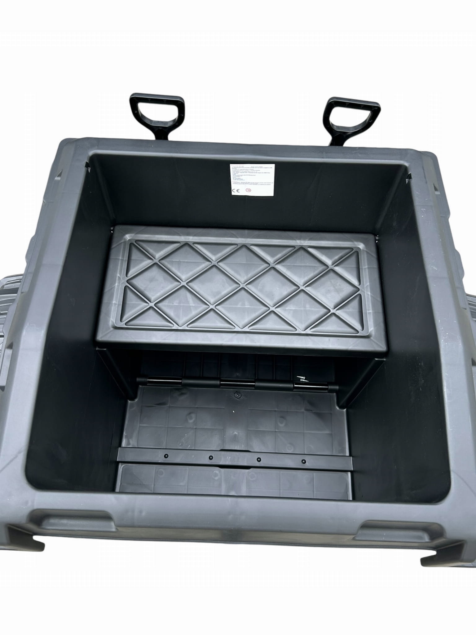 - przyczepka wyposażona w składane wnętrze – praktyczna rozkładana platforma do siedzenia