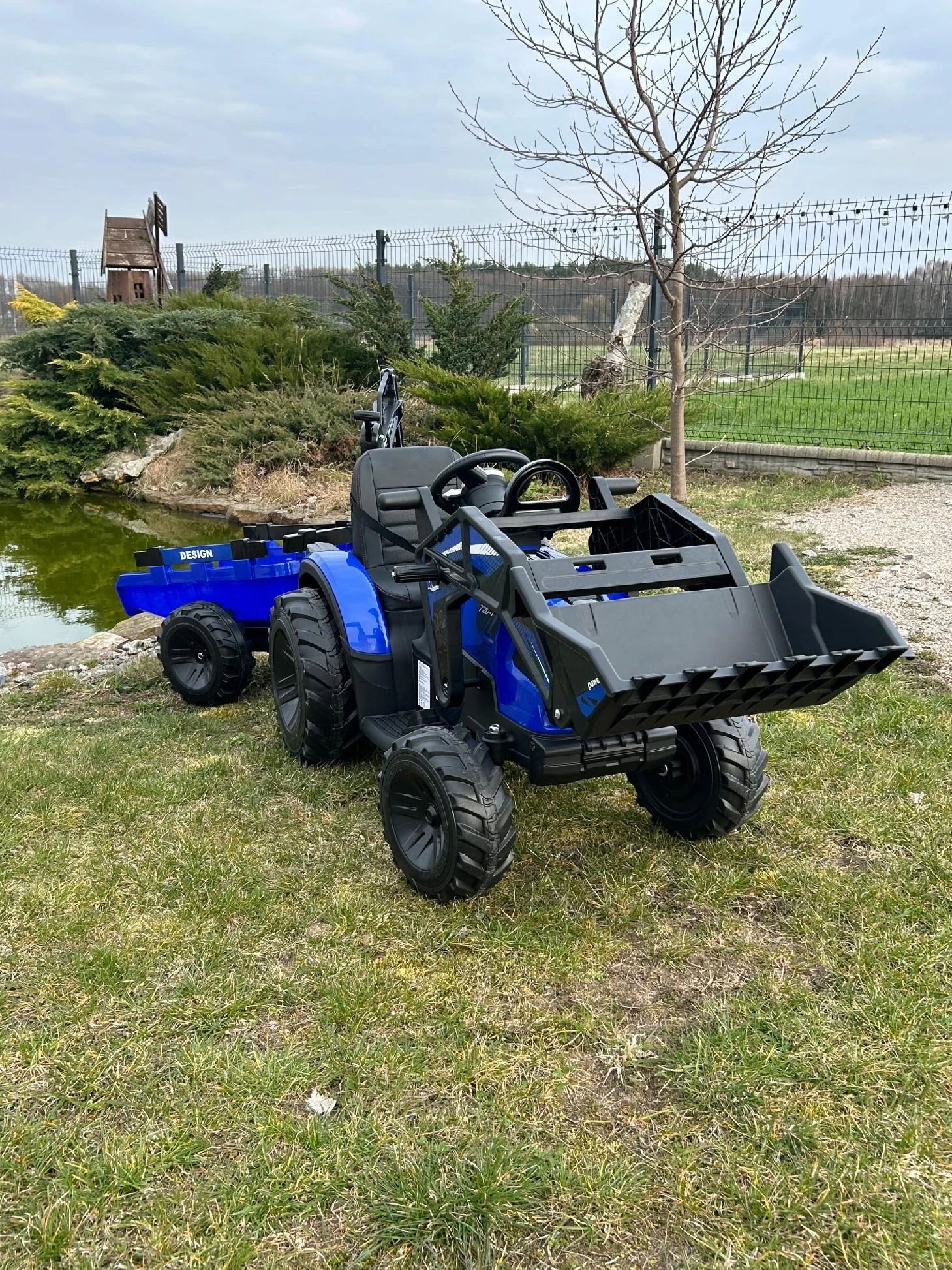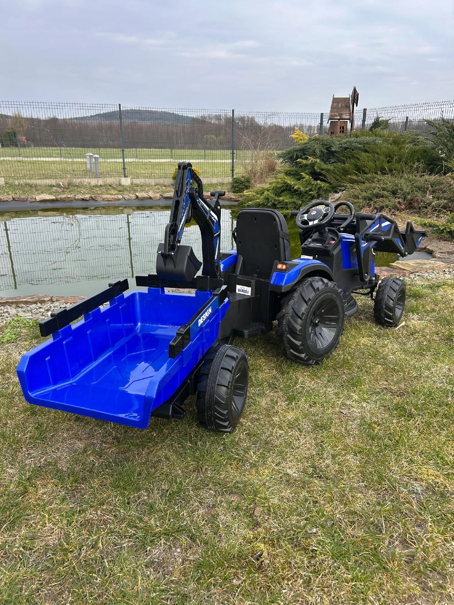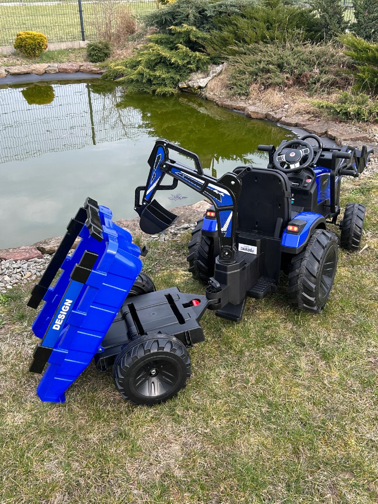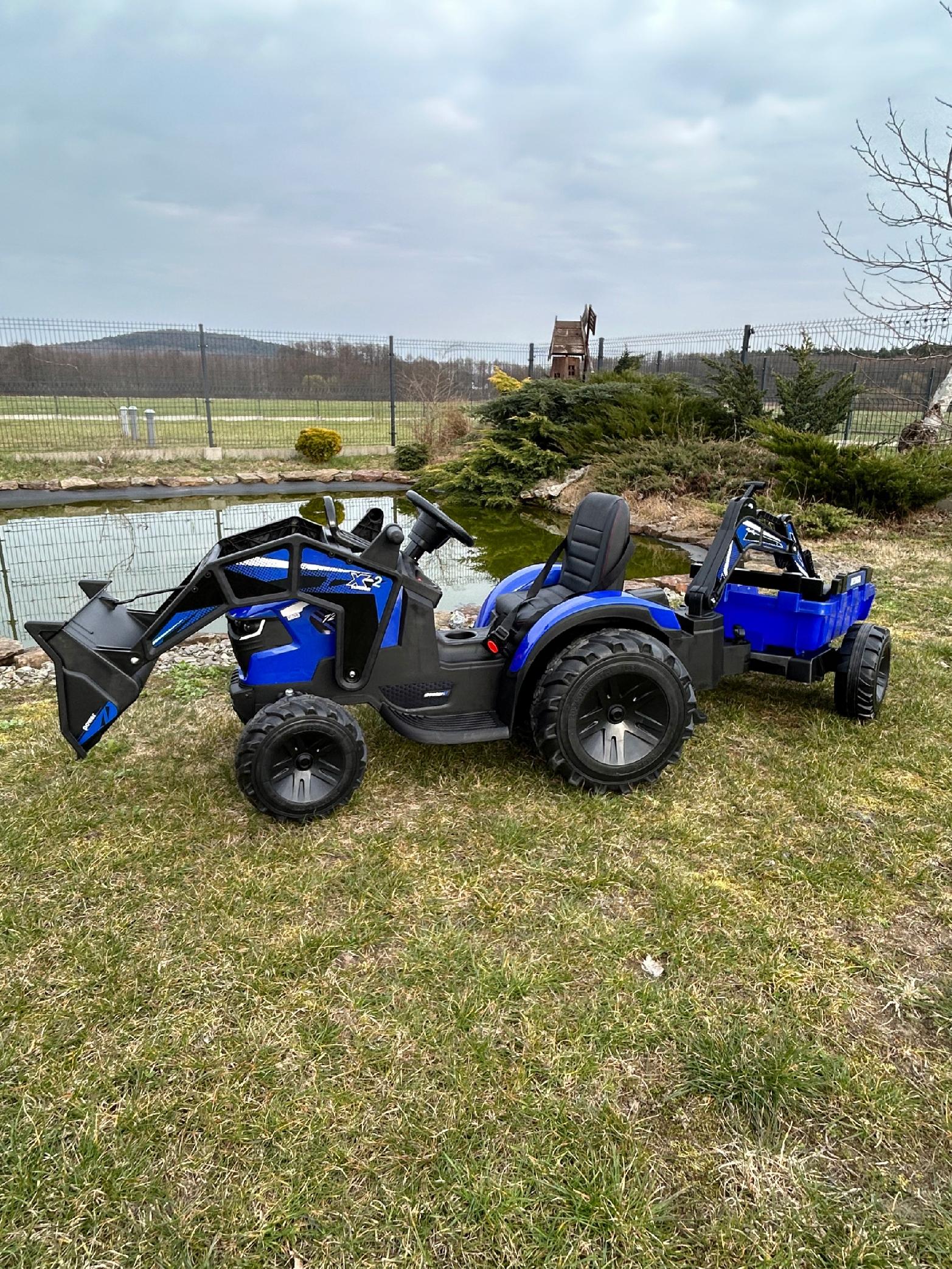 TRAKTOR na Akumulator Dla Dzieci 2X200W 24V7Ah Przyczepka Spychacz Koparka Niebieski