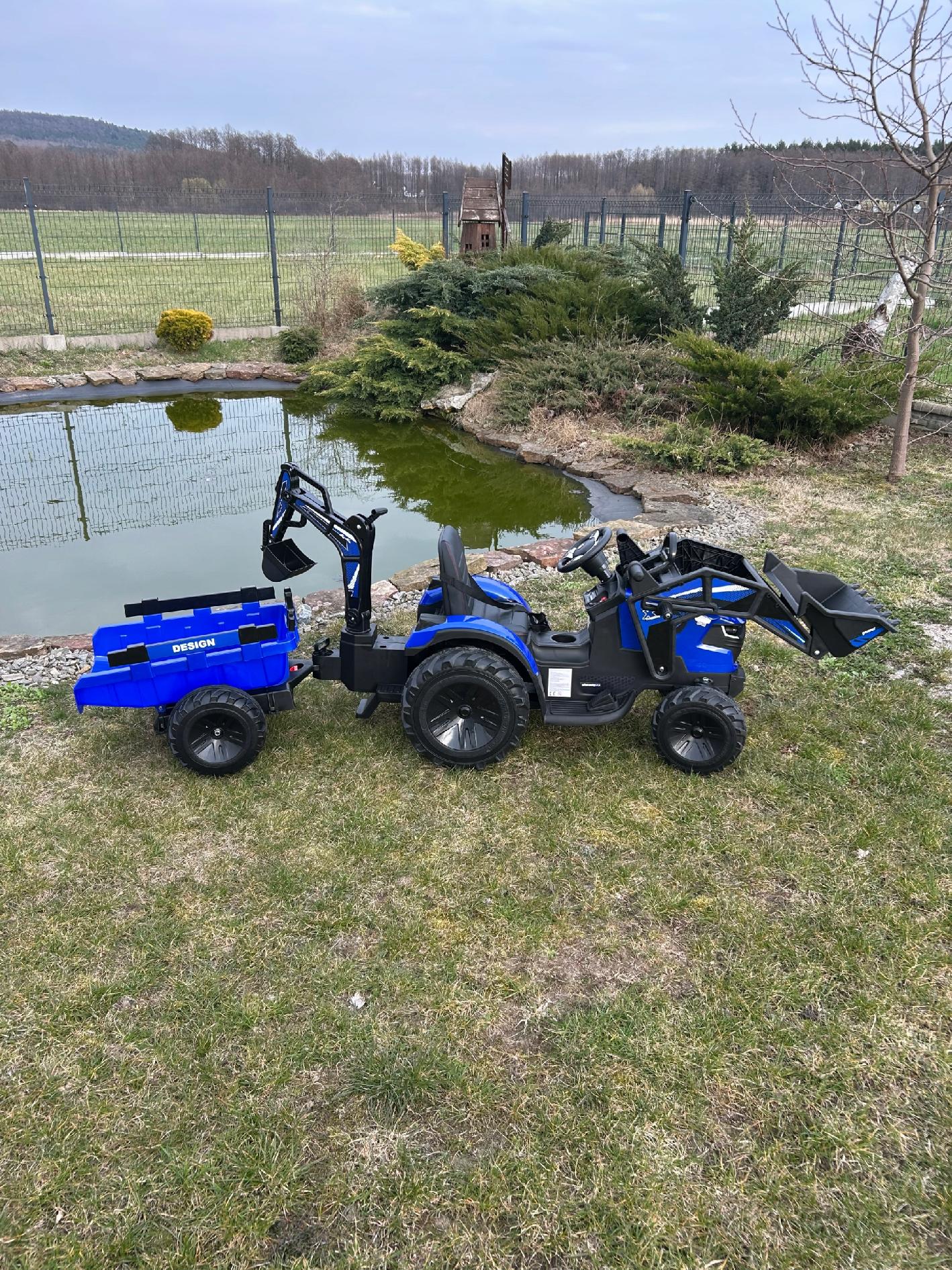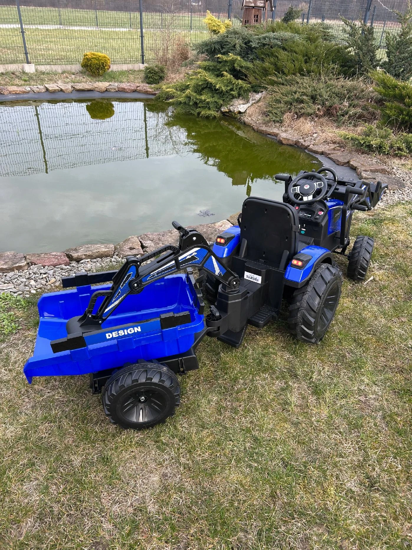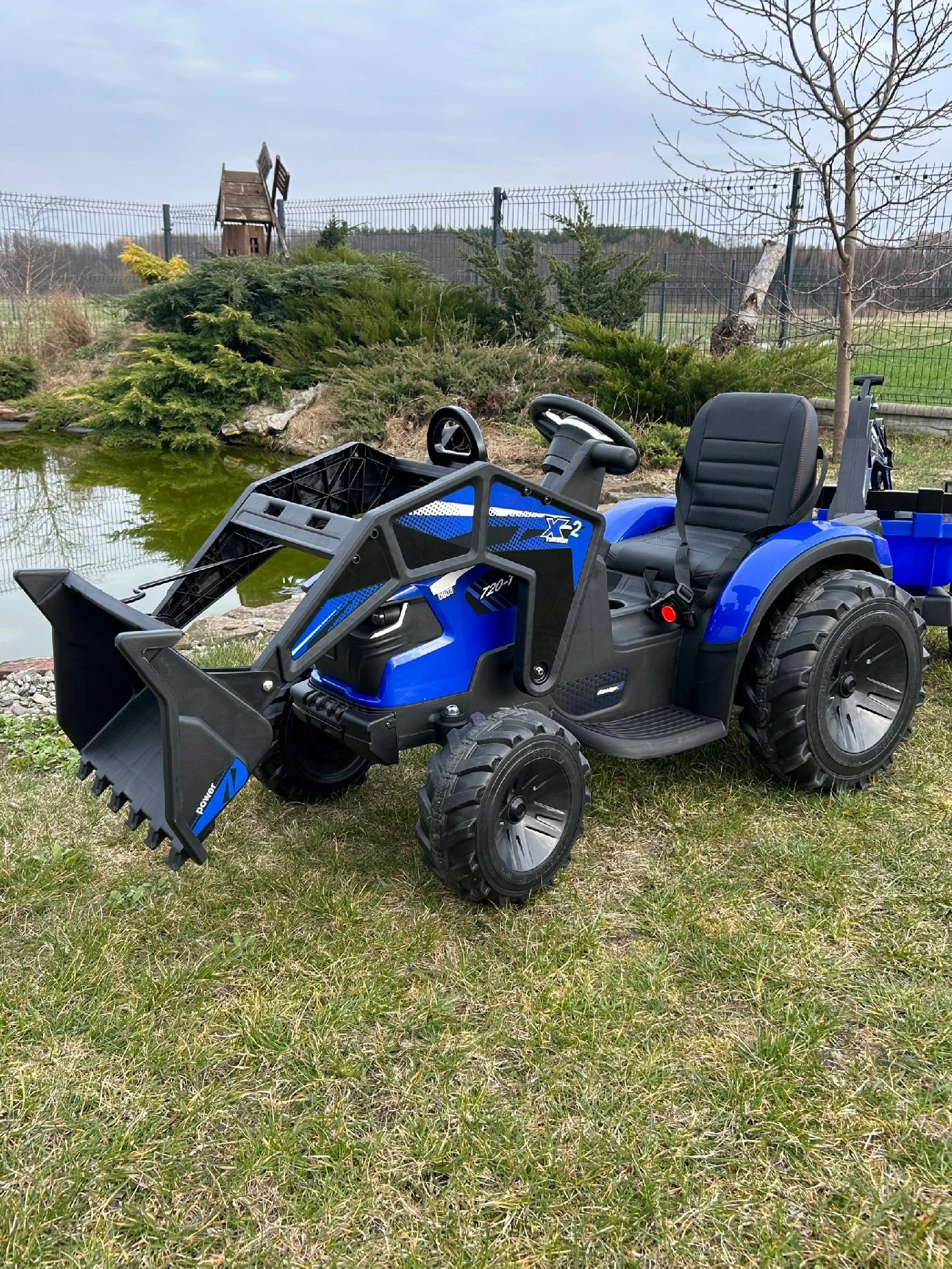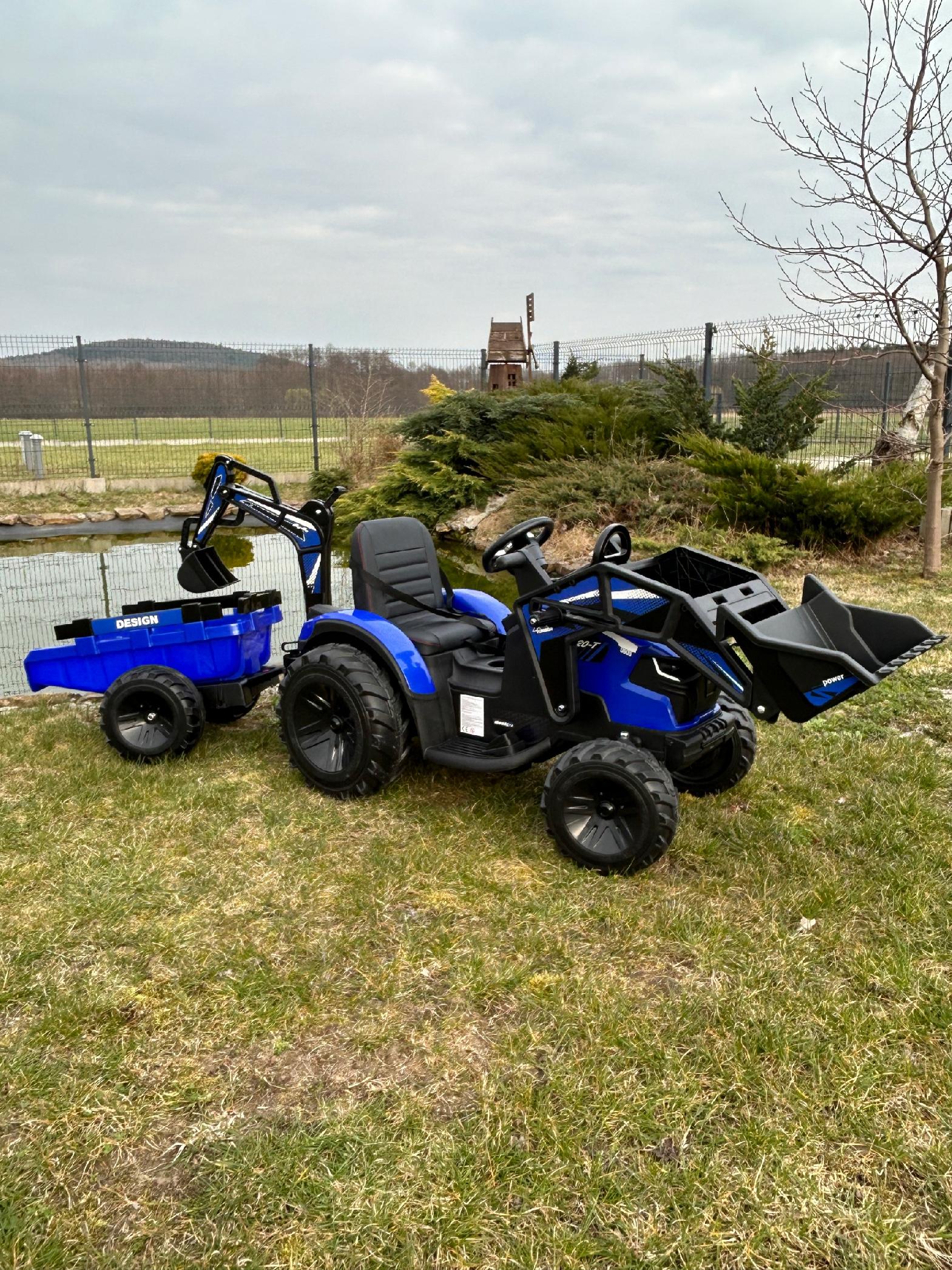 TRAKTOR na Akumulator Dla Dzieci 2X200W 24V7Ah Przyczepka Spychacz Koparka Niebieski