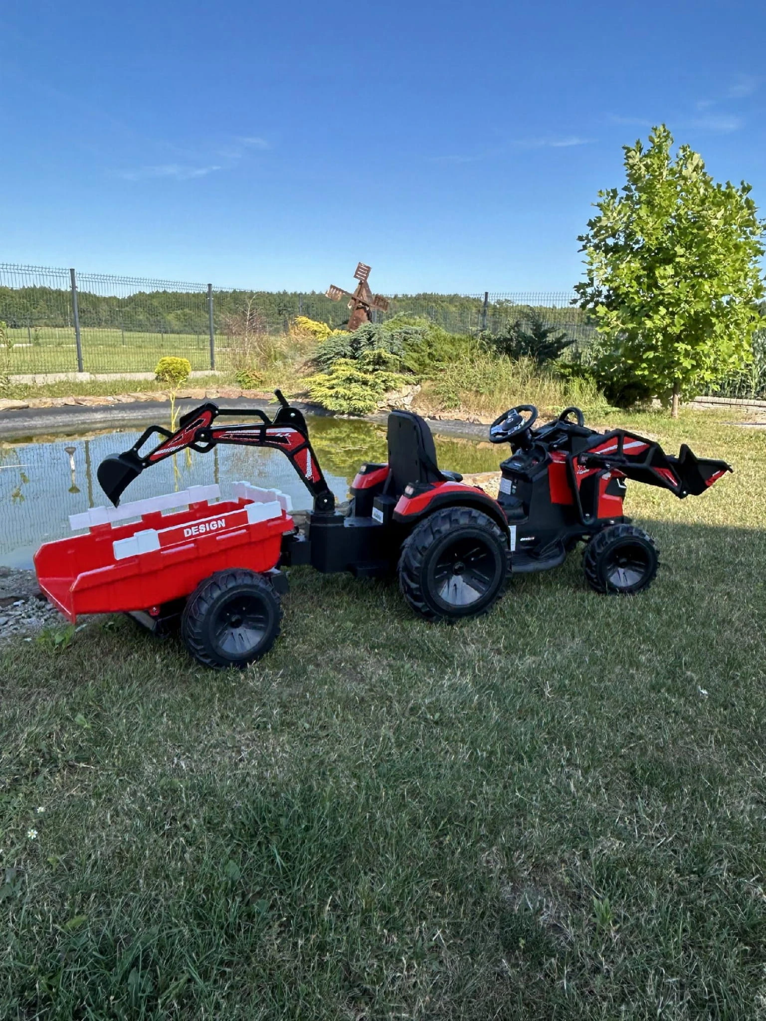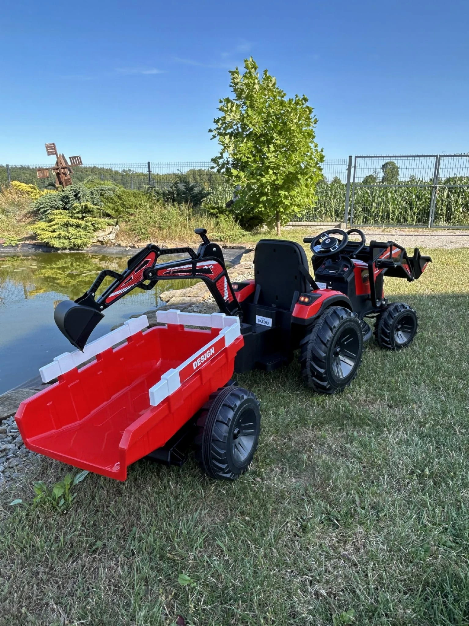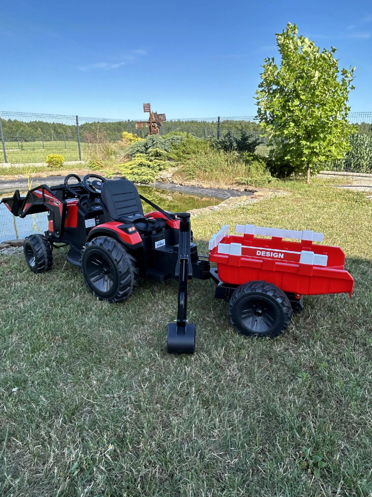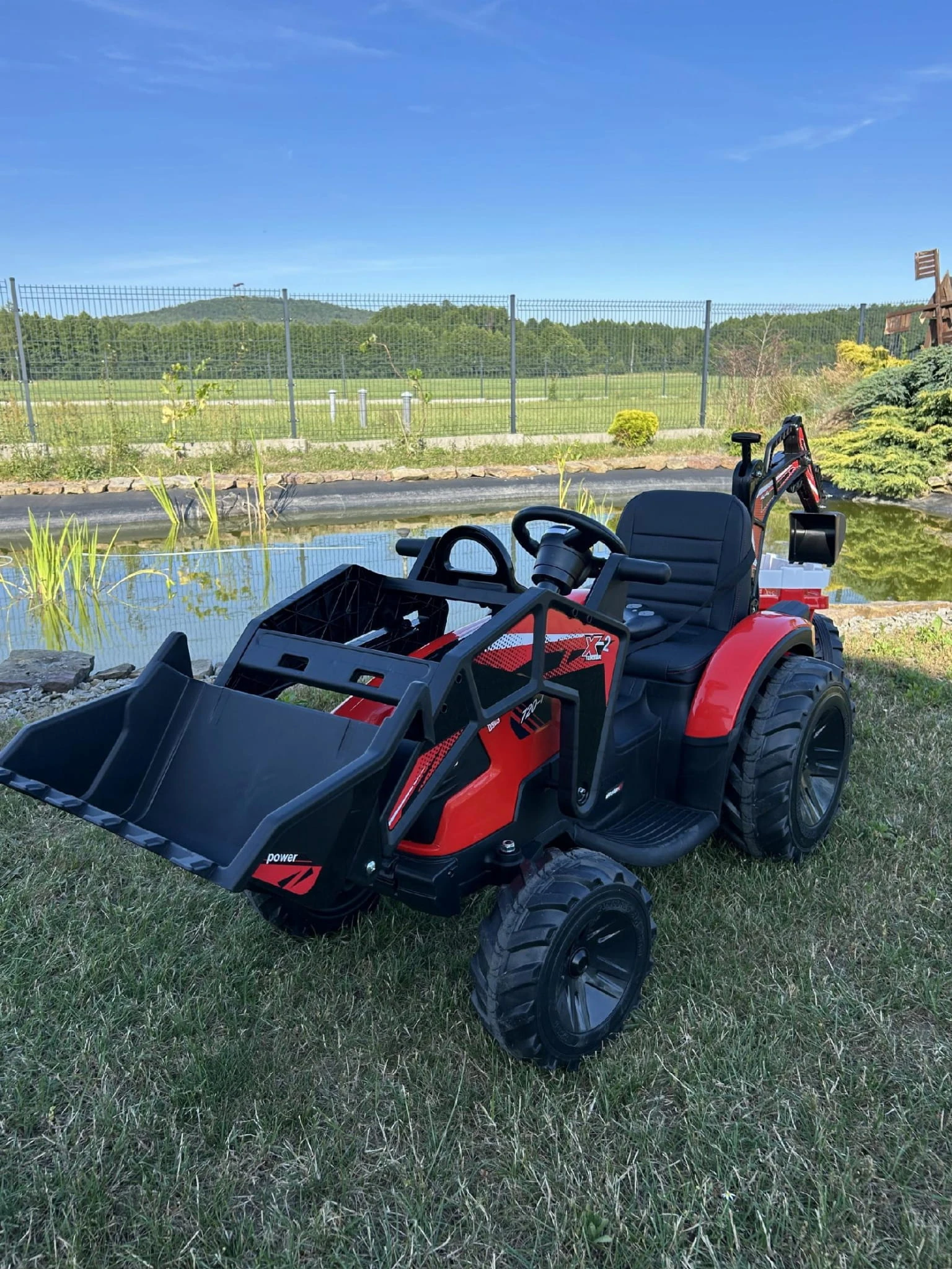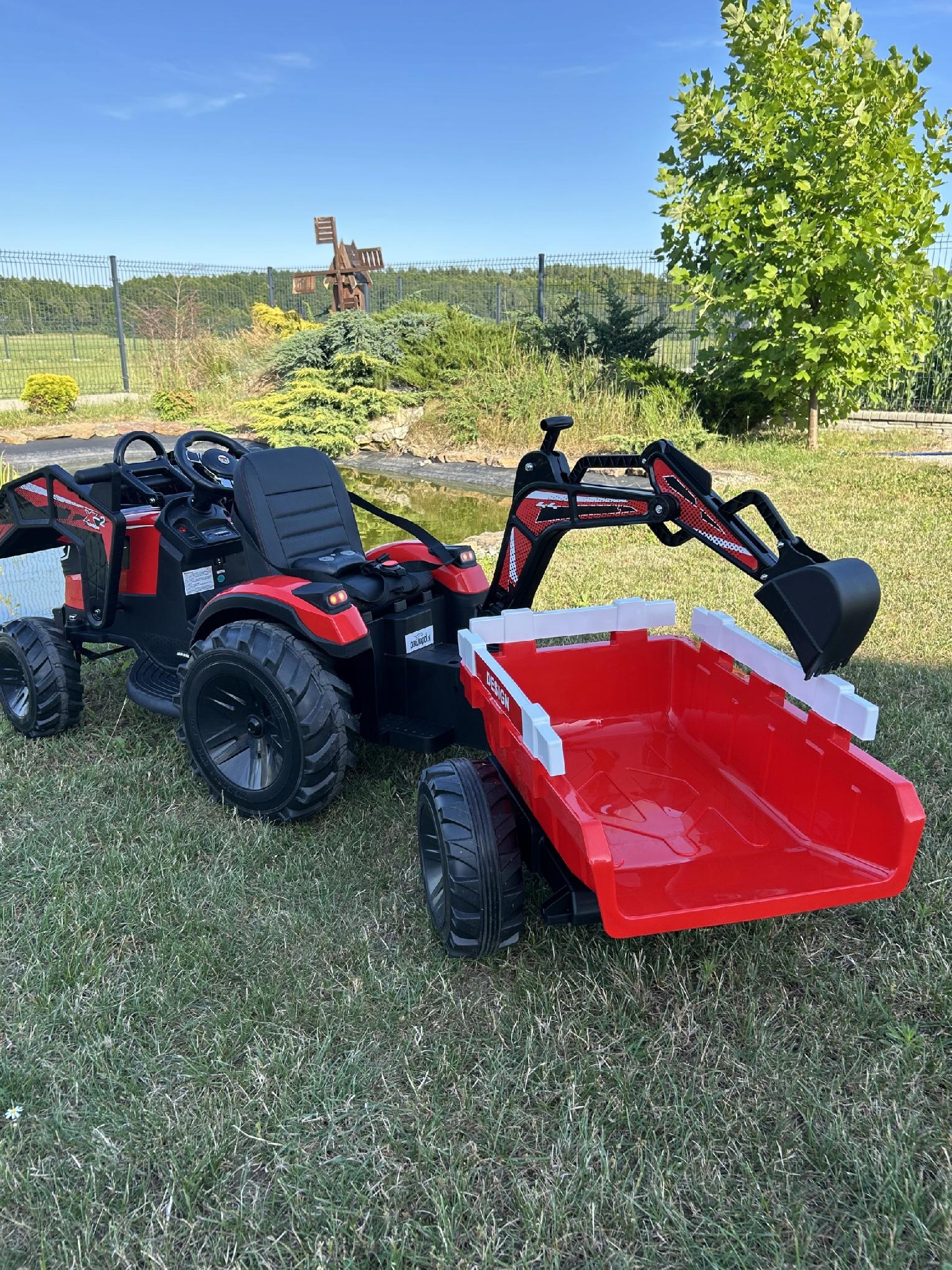 TRAKTOR na Akumulator Dla Dzieci 2X200W 24V7Ah Przyczepka Spychacz Koparka Czerwony