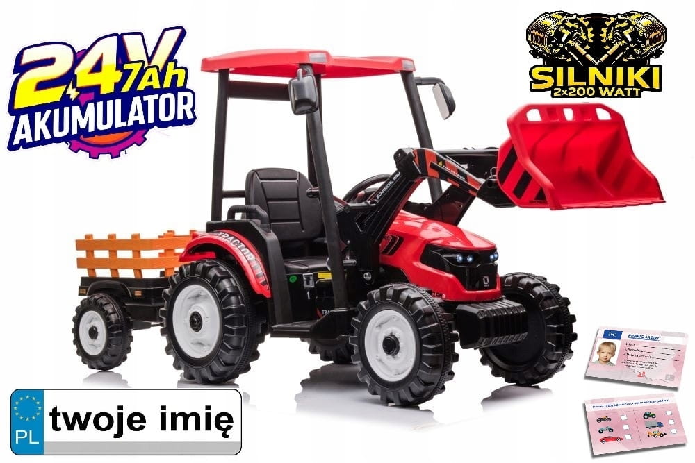 TRAKTOR na Akumulator Elektryczny Dla Dzieci 2X200W 24V 7Ah Przyczepka TUR
