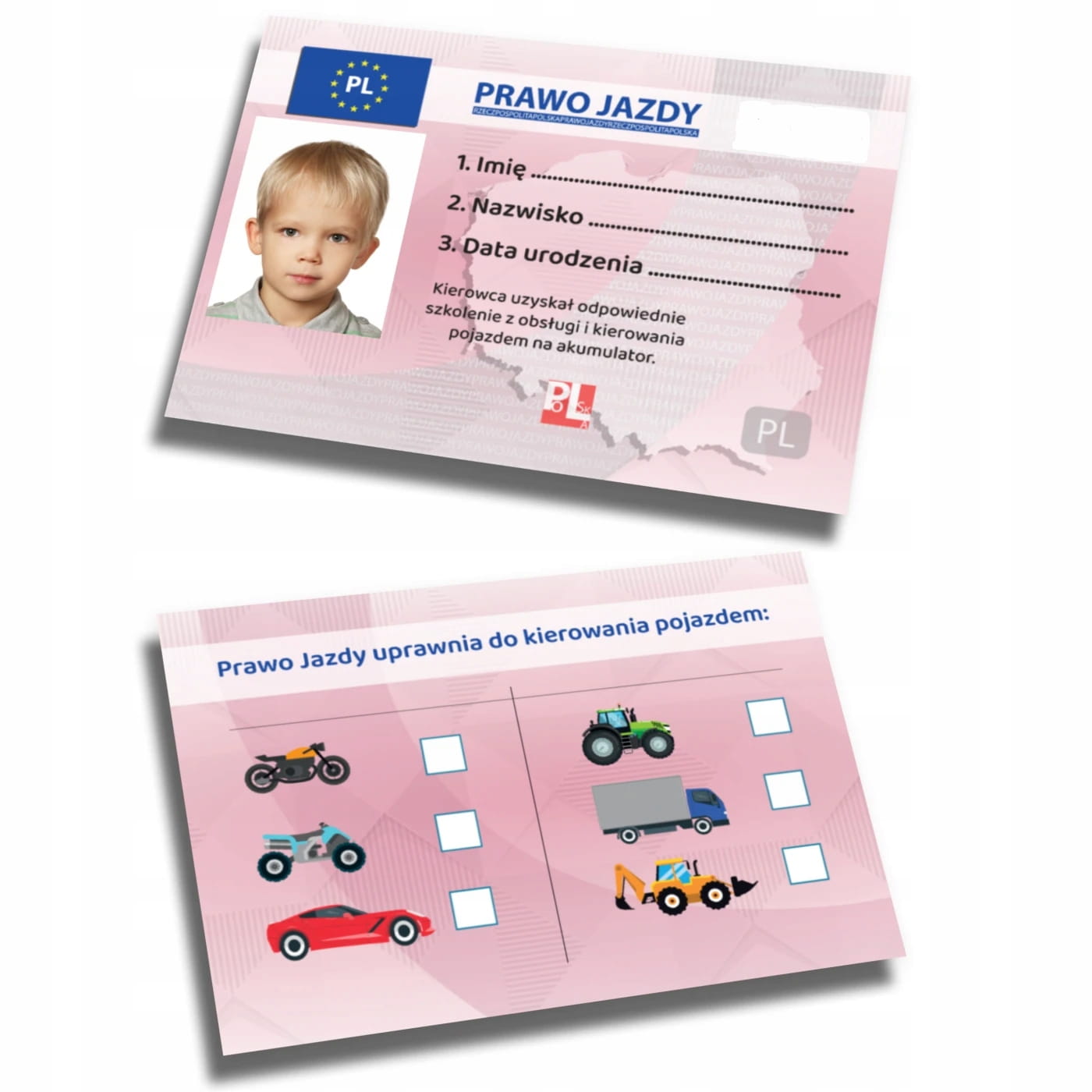 Laminowane Tablice Rejestracyjne z imieniem Twojego dziecka do pojazdu akumulatorowego + Prawo jazdy