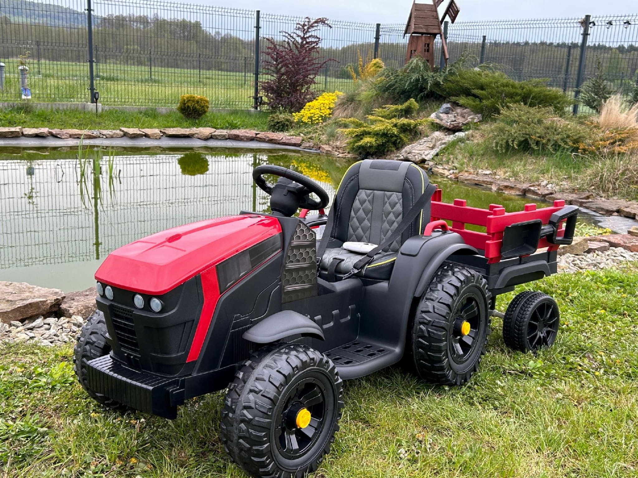 Traktor napędzany jest 2 mocnymi silnikami 2 x 12V 45W + 1 żelowy akumulator 12V 7Ah.