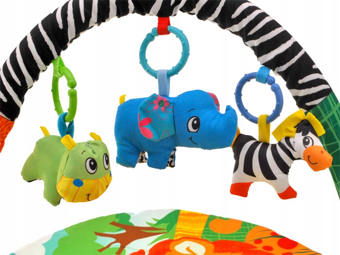 - zdolności motoryczne - dzięki zabawkom powieszonym na pałąku dziecko będzie mogło sięgać, kopać, machać rączkami. Poćwiczy koordynację rozwojową rączek i nóżek.