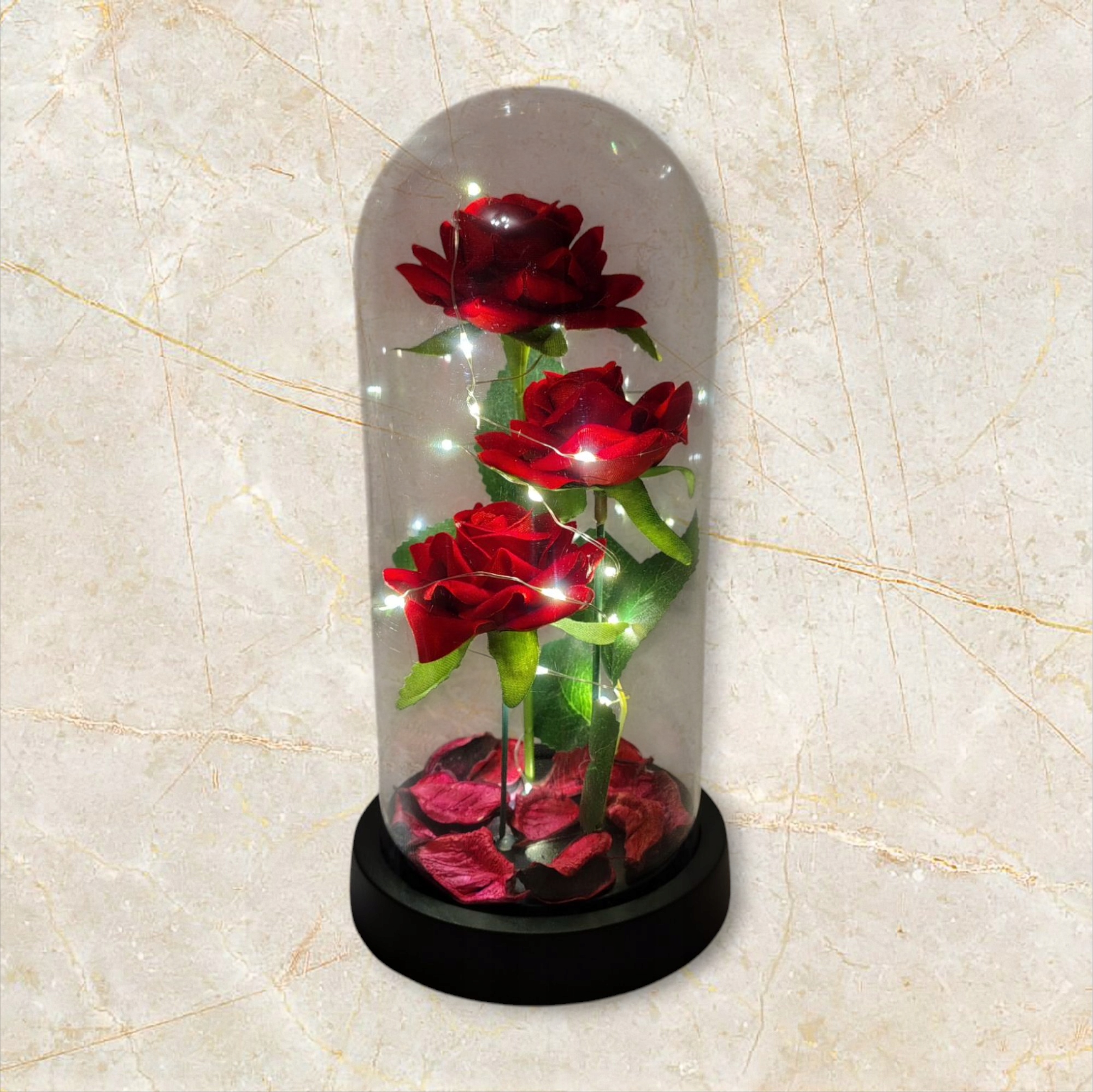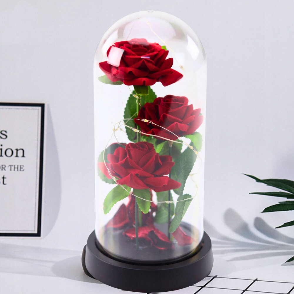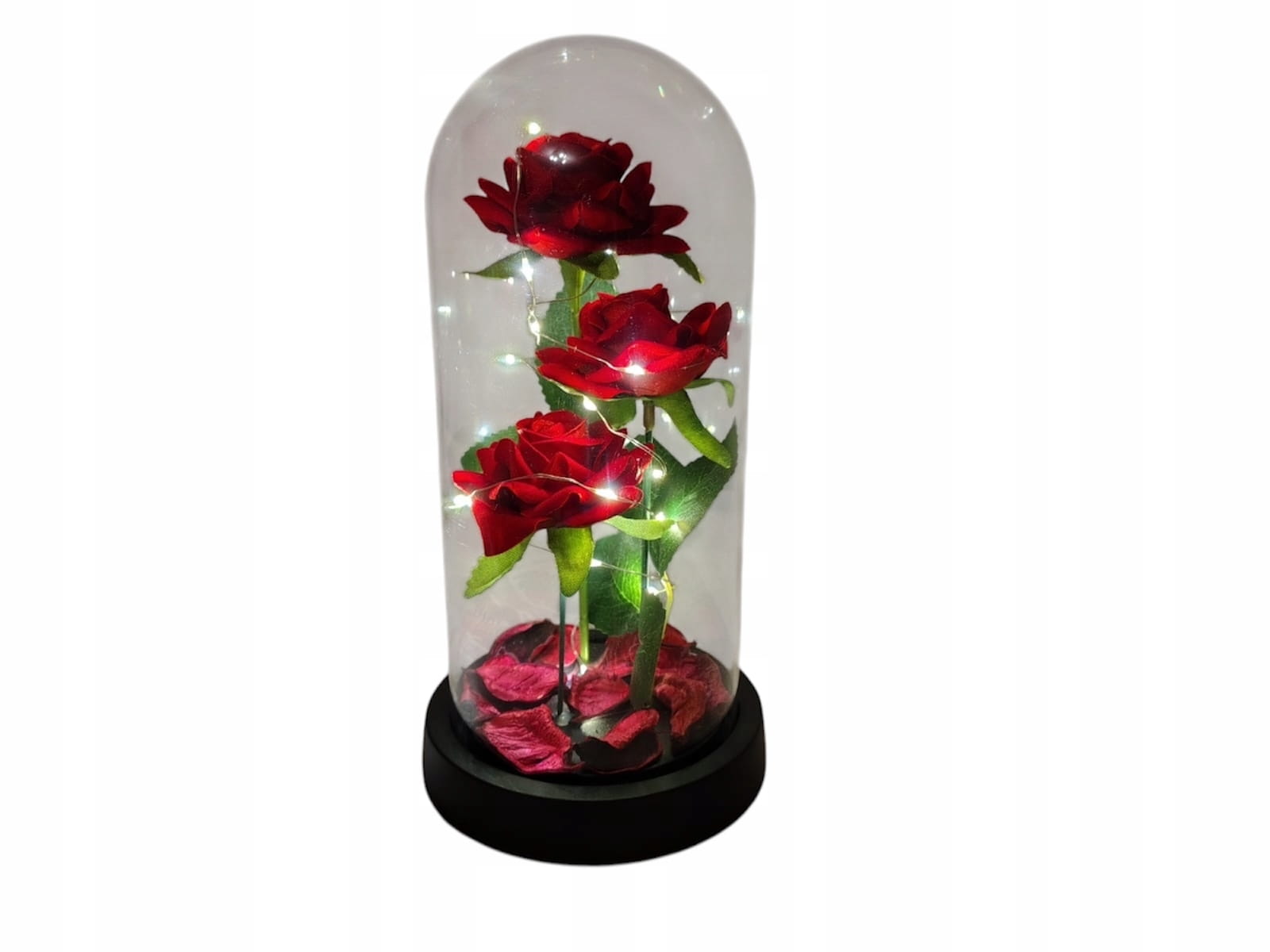Wieczna Róża 3 róże w Kopule z Oświetleniem LED prezent Dzień Kobiet