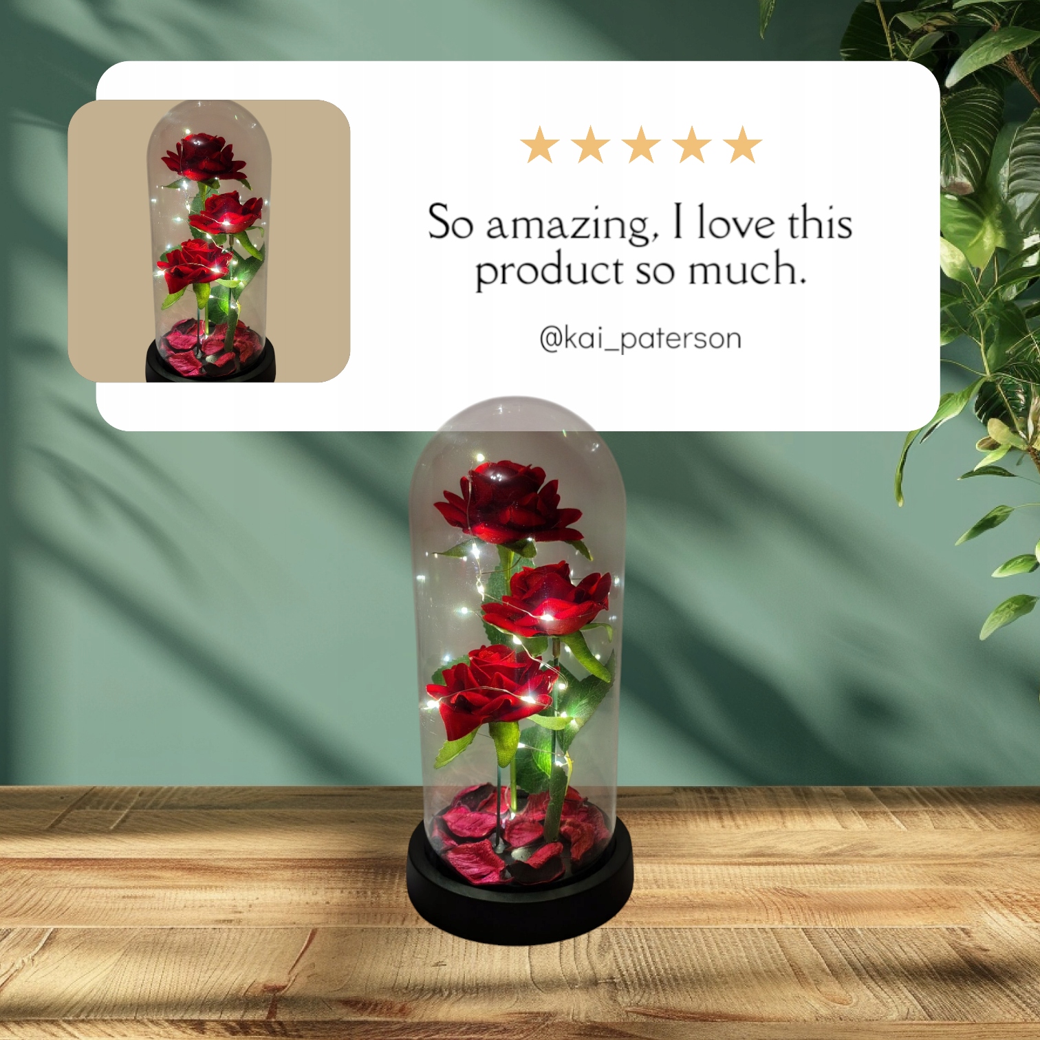 ⭐ Wieczne Róże w Kopule z Oświetleniem LED i Płatkami Róż - Czerwone ⭐