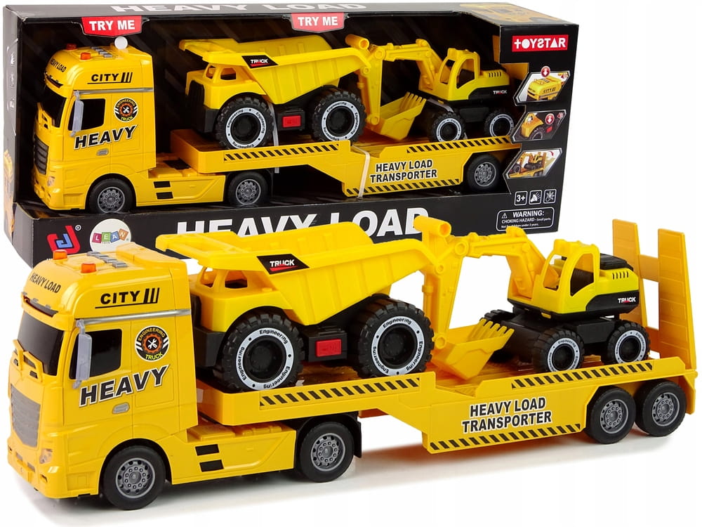 Zestaw Budowa Laweta Koparka Wywrotka Dźwięk Światła Żółta