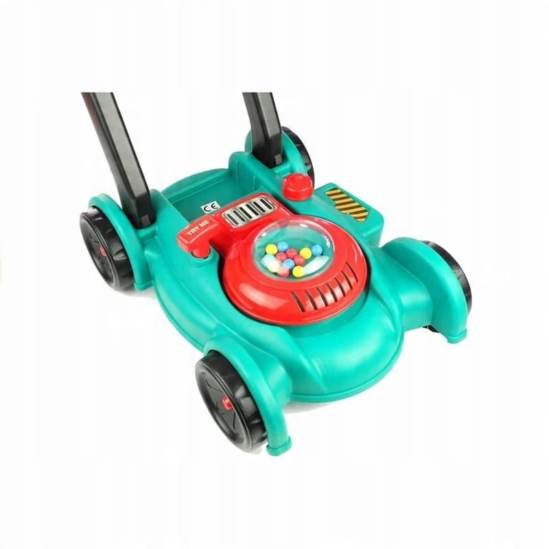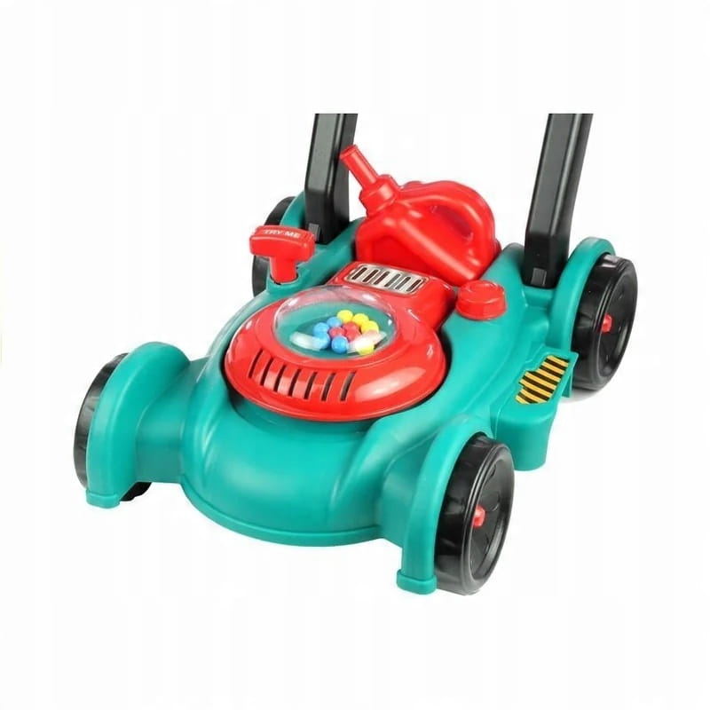 Zabawkowa kosiarka ma funkcję składania, dzięki czemu jej przechowywanie zajmuje znikomą ilość miejsca. Jej głównym atutem jest ręczny rozrusznik, który można aktywować, pociągając gałkę z napisem try me - dźwięki, jakie usłyszy Twój maluch, będą przypominać płynące z prawdziwej maszyny! Zabawka posiada gałkę i dźwignię, którymi można ruszać, oraz kolorowe kuleczki, hałasujące podczas przepychania kosiarki.