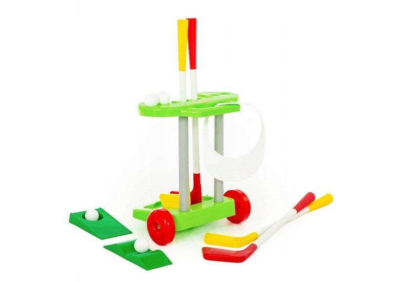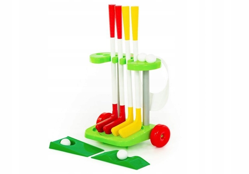 W wózeczku można umieścić kije, każdy ma osobne miejsce. Można grać nim w domu lub w ogrodzie. W zestawie są jeszcze cztery golfowe piłeczki i dwa dołki w różnym kształcie. Gra rozpoczyna się na wbiciu piłeczki do dołka. Rozpocznij rywalizację z domownikami, kto wbije pierwszy piłeczkę, ten wygrywa!