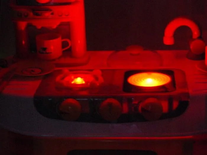 W zestawie znajduje się również drugi palnik z dźwiękiem oraz światełkiem. Kuchnia posiada duży okap, na którym można zawiesić akcesoria kuchenne.