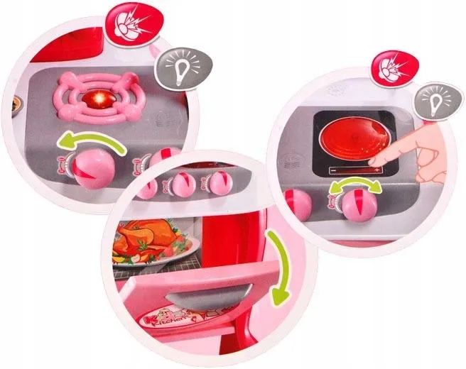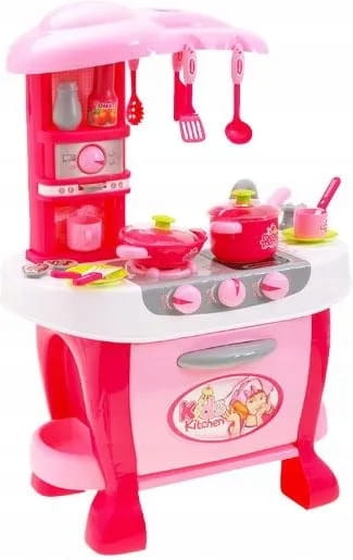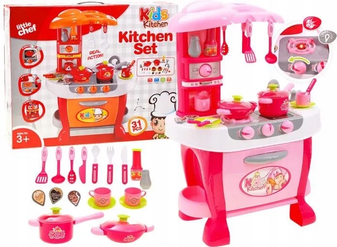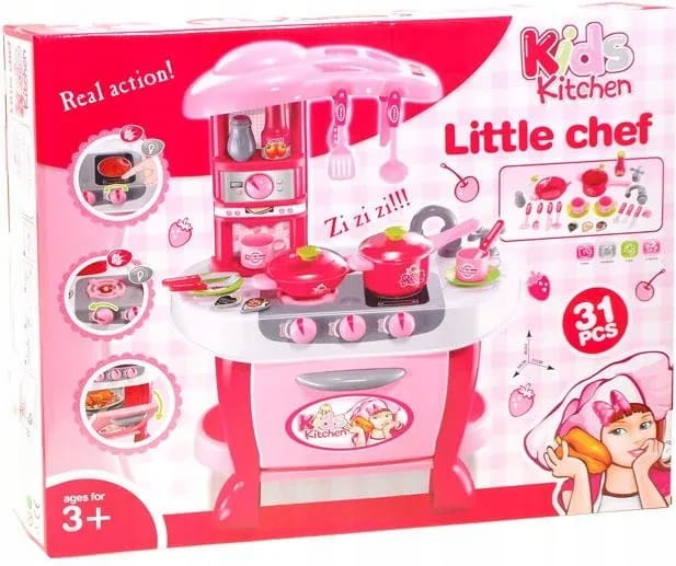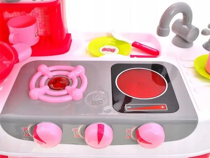 Prawie każde małe dziecko uwielbia pomagać w przygotowywaniu domowych posiłków, a jak nie lubi to zapewne polubi dzięki temu rewelacyjnemu zestawowi. Bezpieczna kuchnia do zabawy w dom, restaurację, bar - to właśnie propozycja dla Państwa pociech. Świetny pomysł na prezent dla przyszłych małych kucharzy, pomocników kucharzy, restauratorów itp. Zabawa w gotowanie rozwija wyobraźnię dziecka, uczy poznawania zasad gotowania, uczy obowiązków domowych. Czysta przyjemność "zjeść" pyszny posiłek przygotowany przez własne dziecko. Mały kucharz będzie mógł bez problemu teraz urządzić przyjęcie urodzinowe dla swoich lalek i misiów. Jeszcze większą frajdą jest to, że kuchnia ma podświetlaną imitację płyty elektrycznej, która wydaje dźwięk gotowania oraz fantastyczny ekspres do kawy.