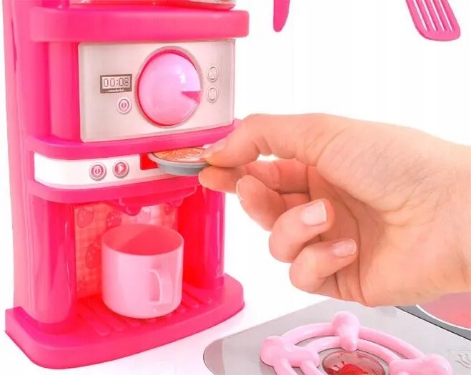 Zestaw duża kuchnia piekarnik ekspres do kawy mały kucharz dźwięki światła różowy